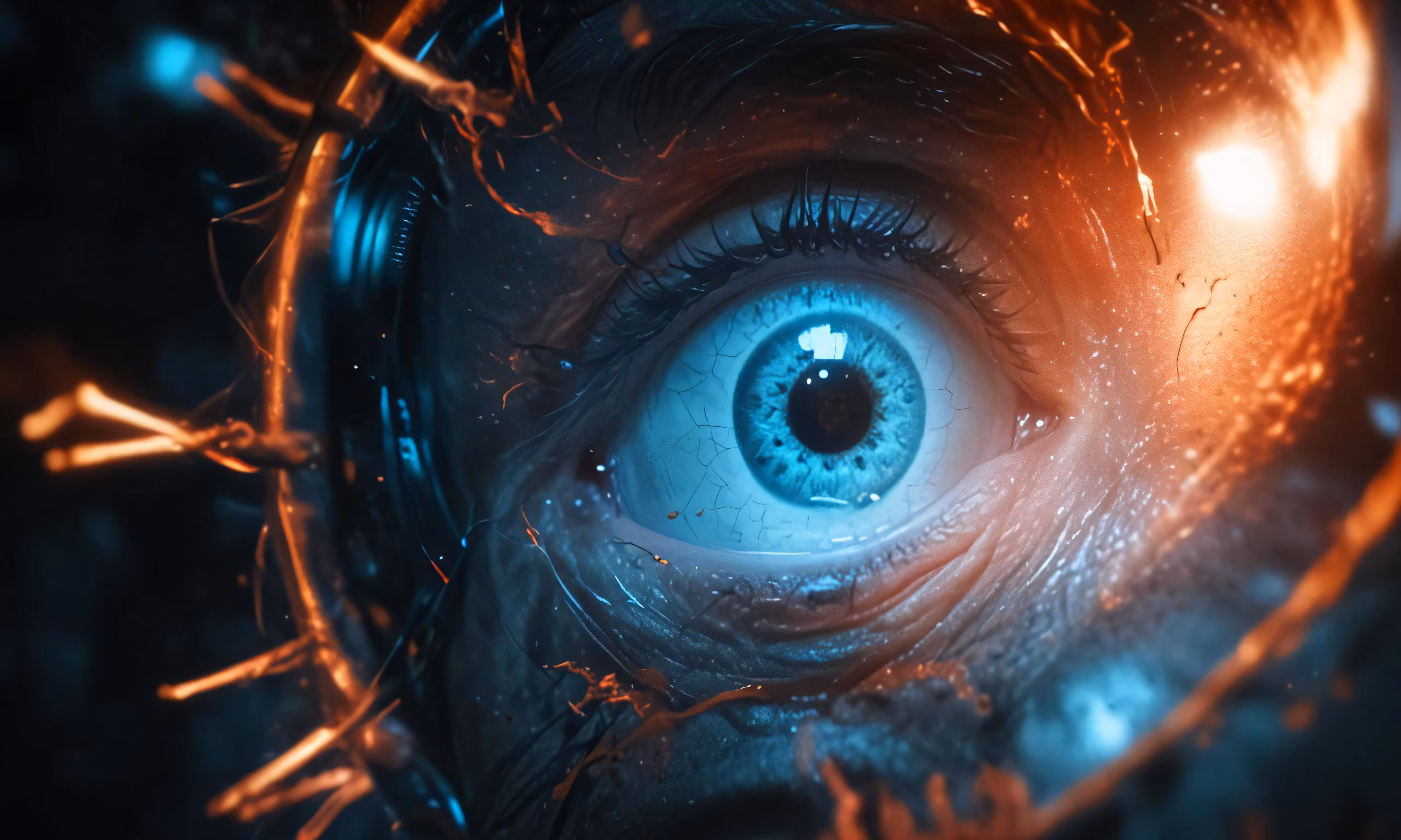 High resolution picture, free to use, the official logo for the 50 /a blue eye with glowing orange streaks in it