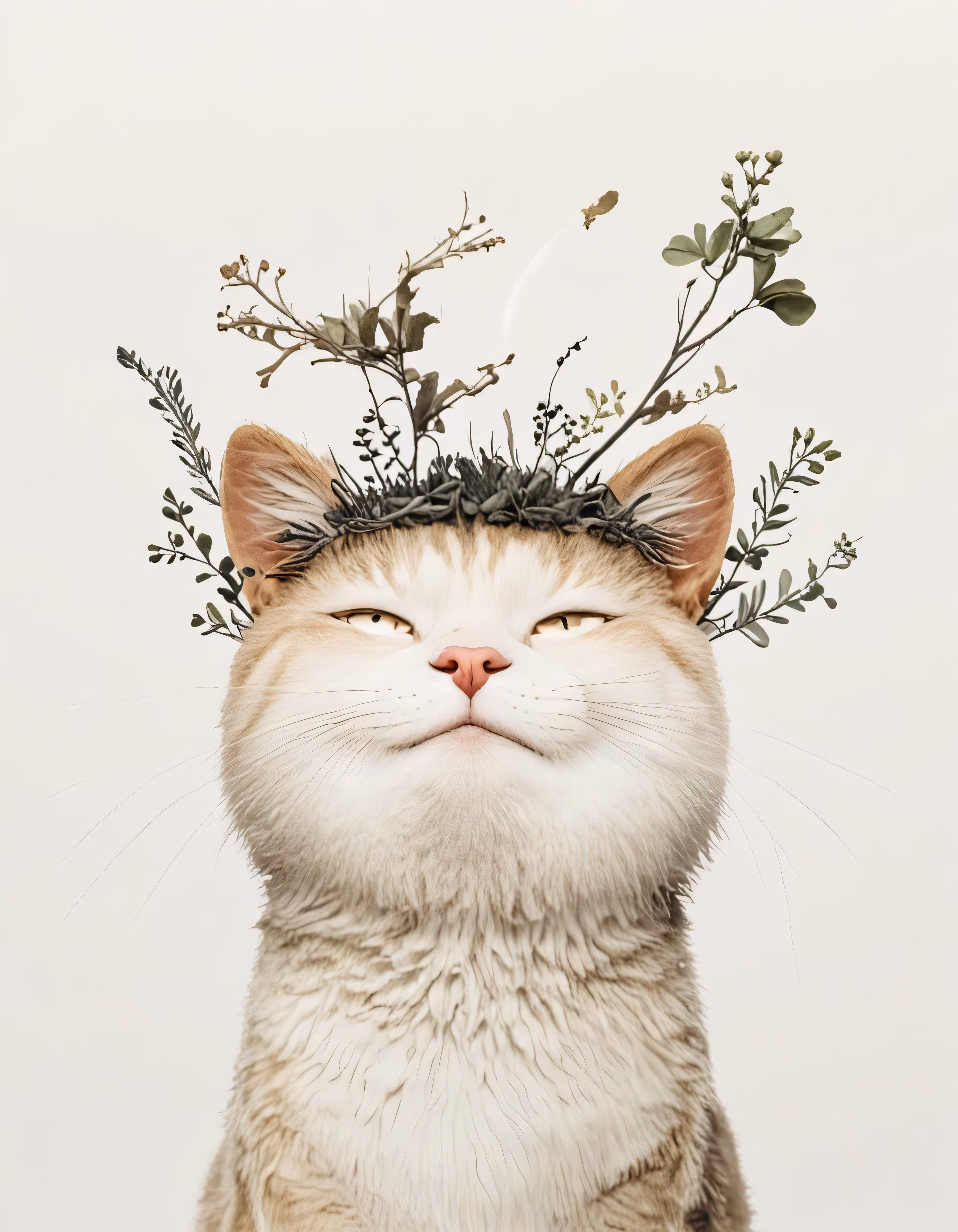 High resolution picture, free to use, the official logo for the 50 /a cat has a crown made of plants on its head
