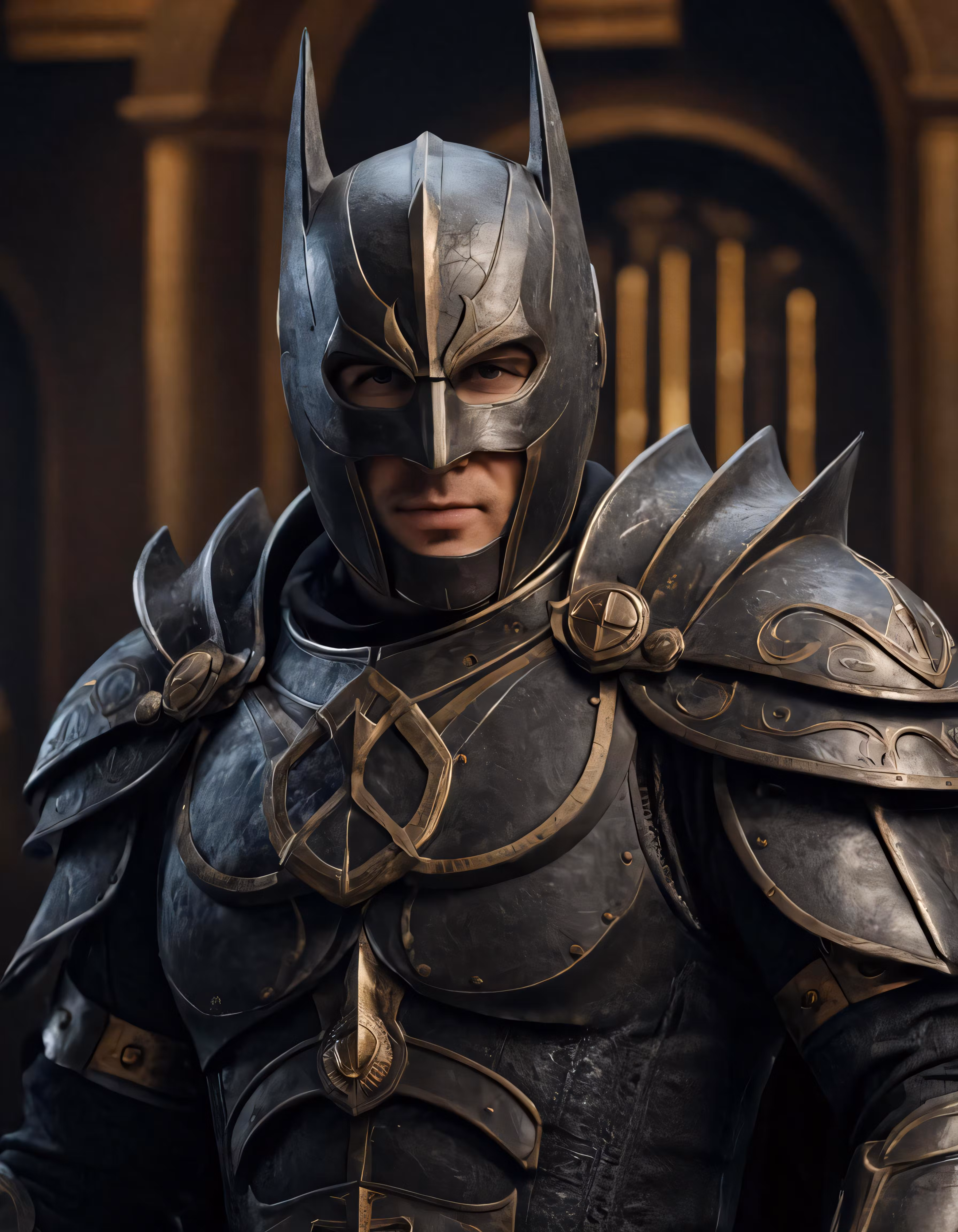 High resolution picture, free to use, the official logo for the 50 /a close up of a man wearing a black and gold armor