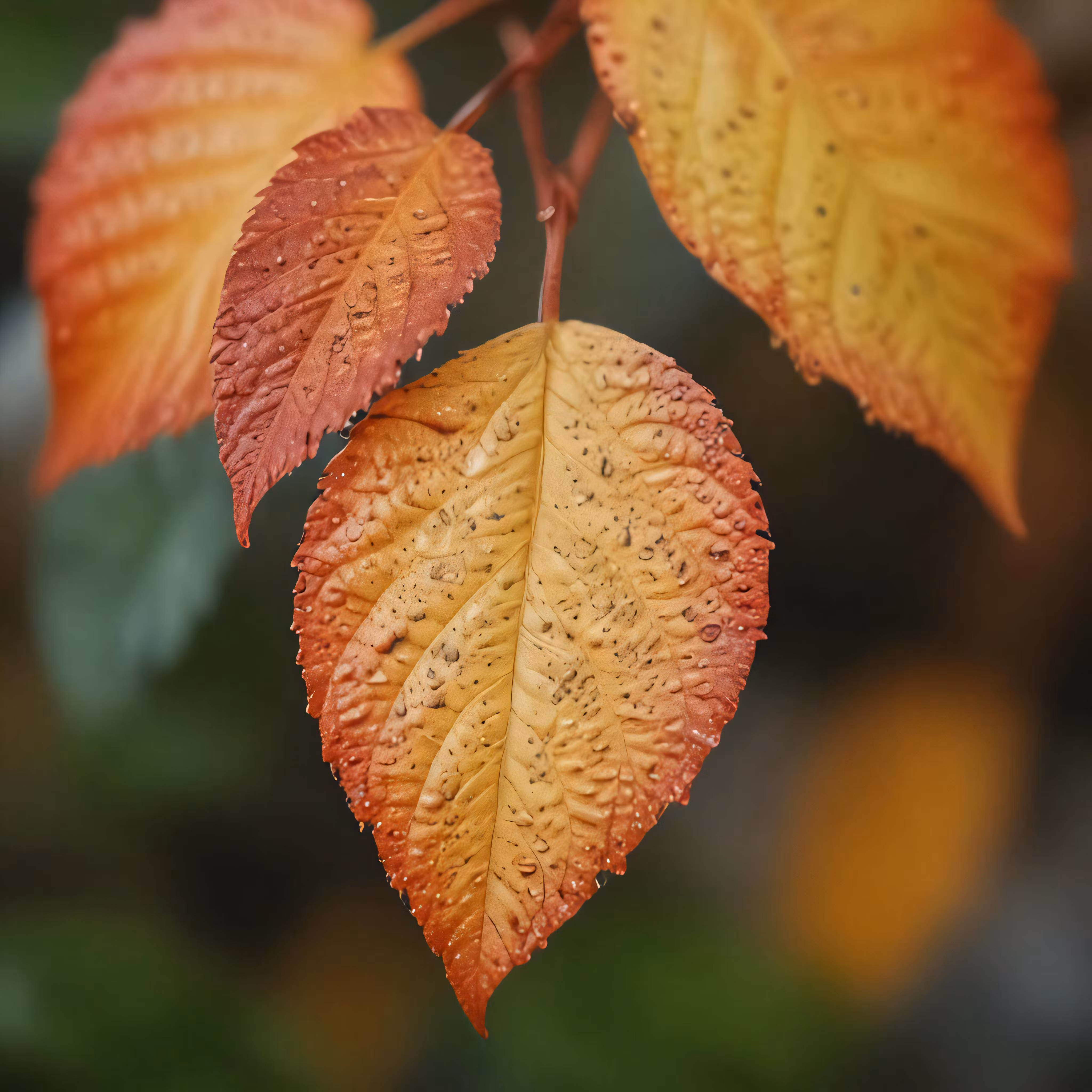 High resolution picture, free to use, the official logo for the 50 /a couple of leaves with wet orange leaves on them