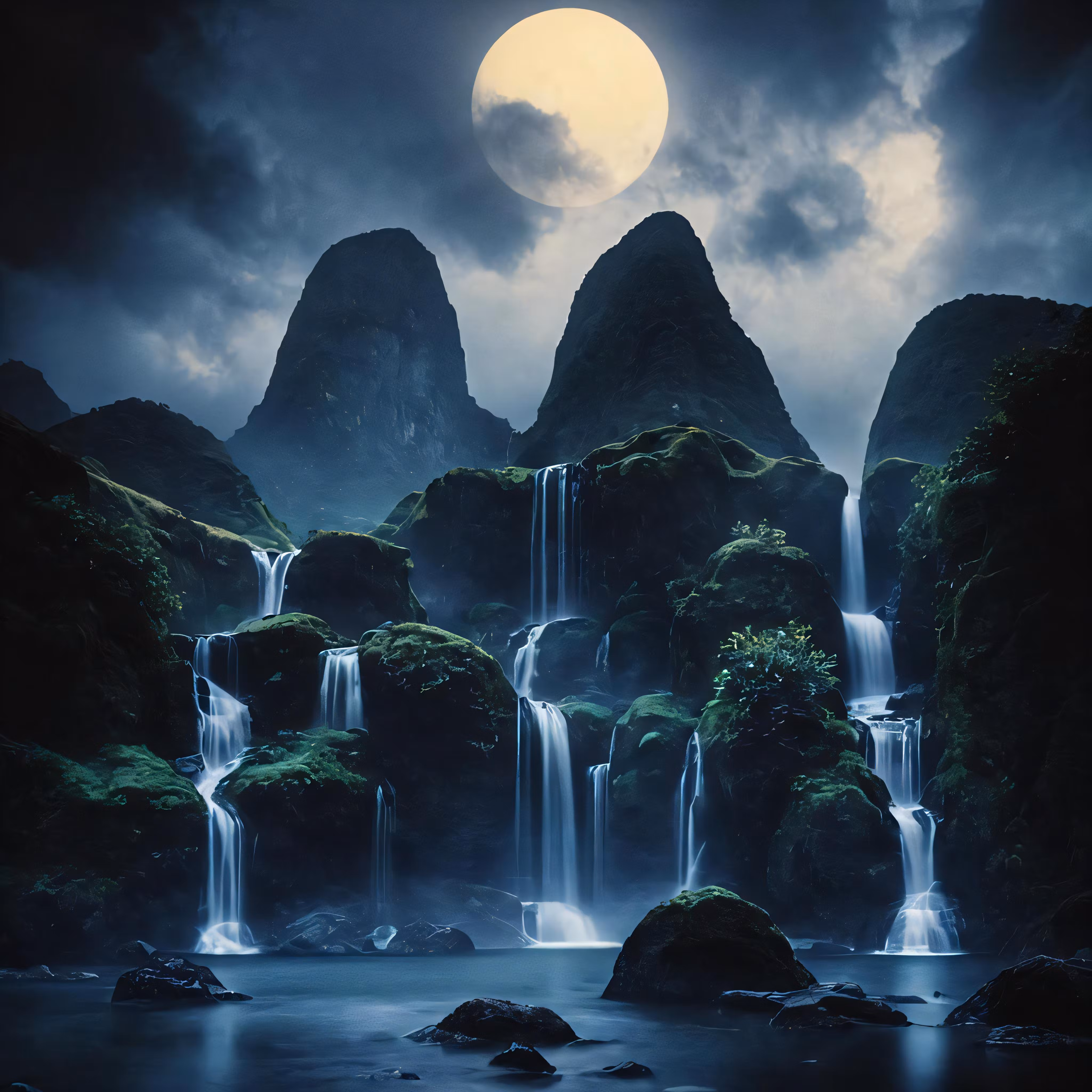 High resolution picture, free to use, the official logo for the 50 /a dark and stormy landscape with mountain stream