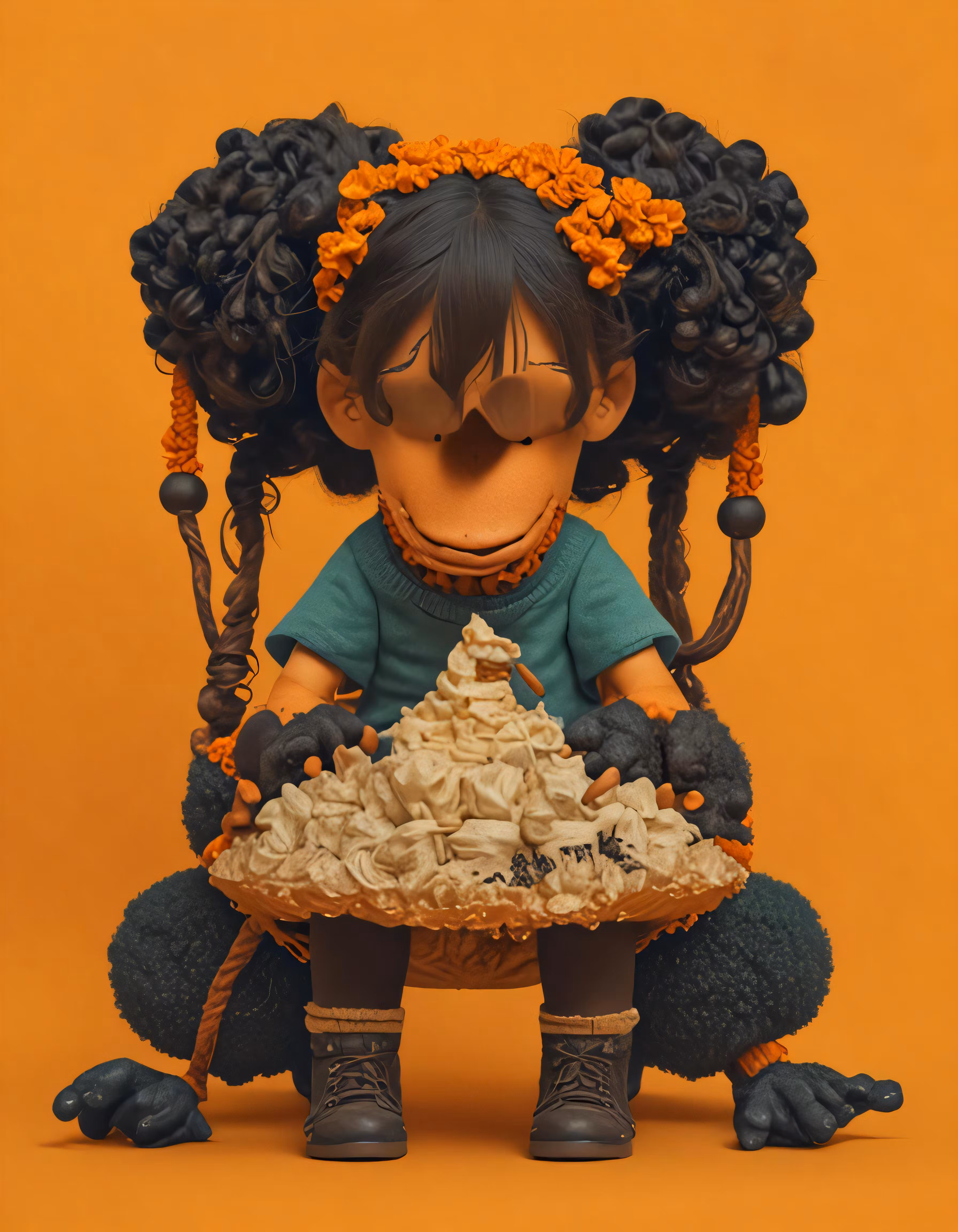 High resolution picture, free to use, the official logo for the 50 /a figurine sits with her food