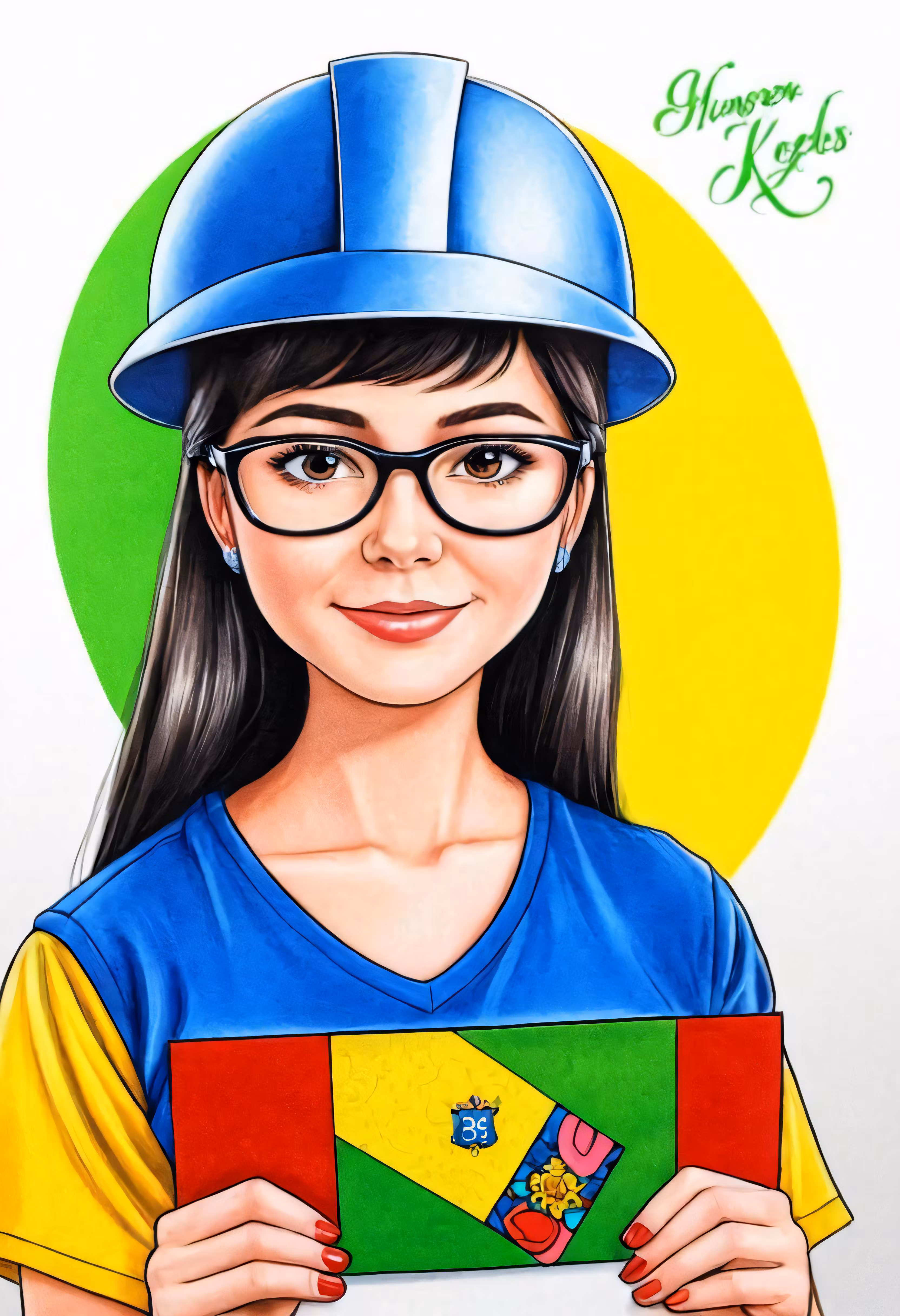 High resolution picture, free to use, the official logo for the 50 /a girl with glasses and a helmet holding up a piece of paper