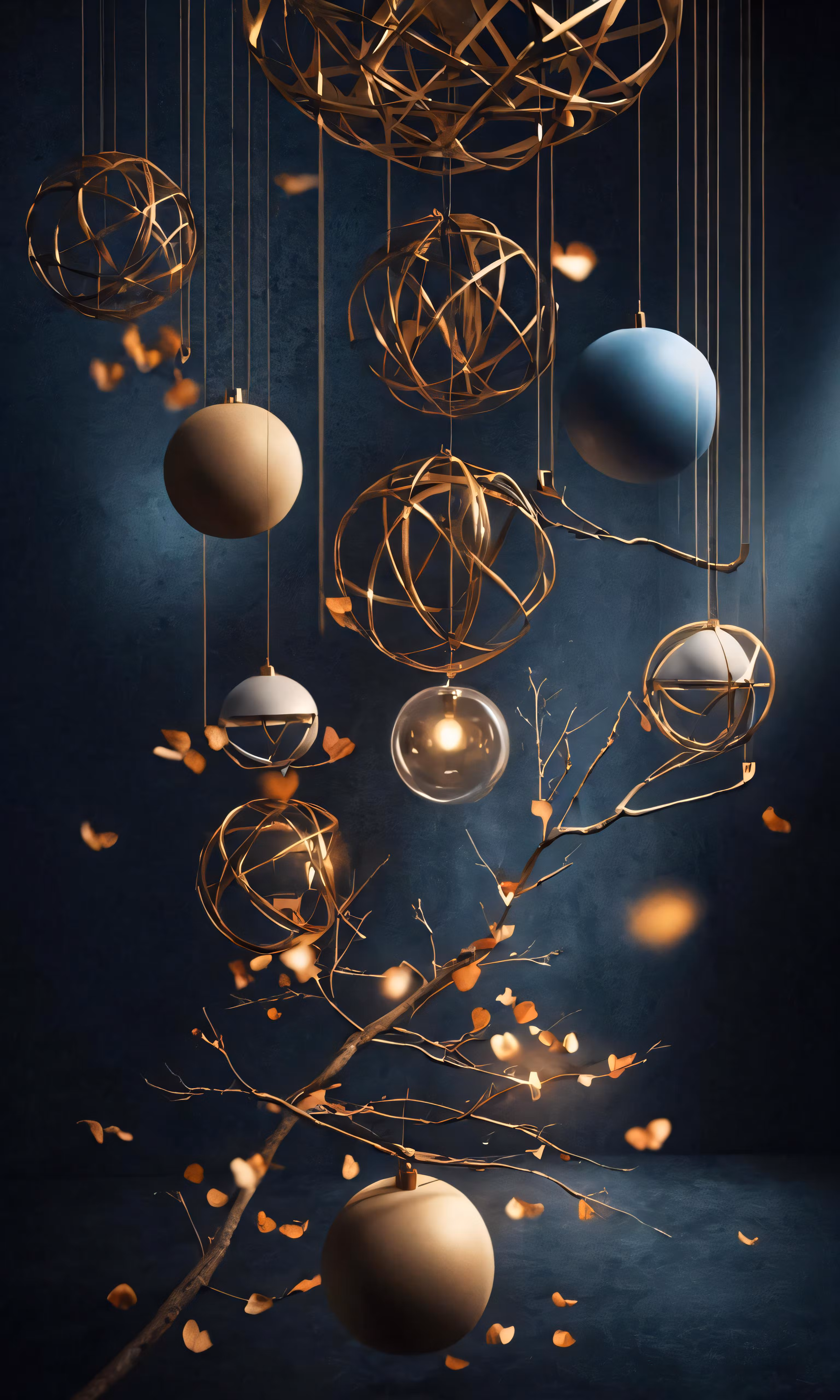 High resolution picture, free to use, the official logo for the 50 /a gold tree with different colored balls hanging off it