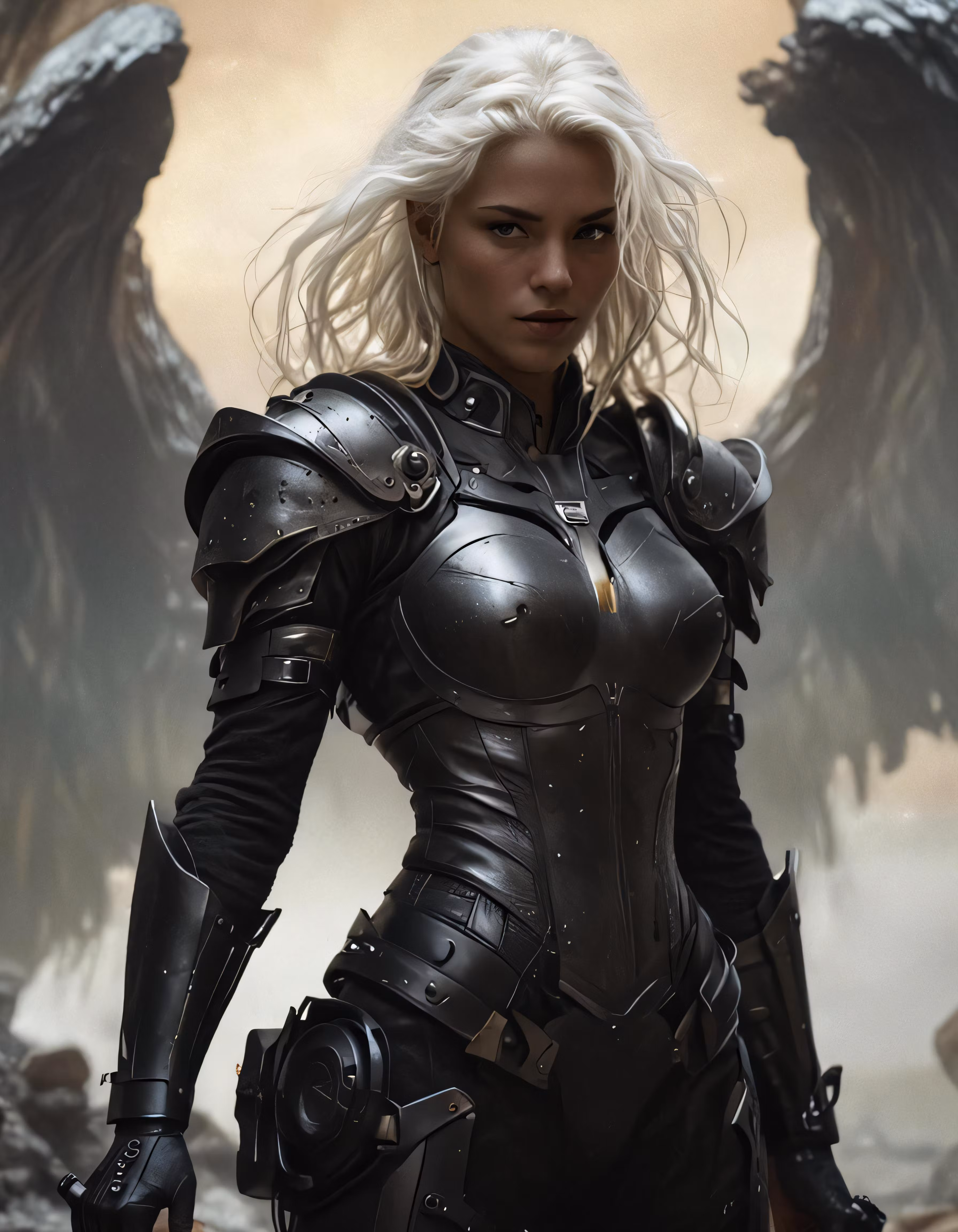 High resolution picture, free to use, the official logo for the 50 /a lady in armor stands in front of an angry bird