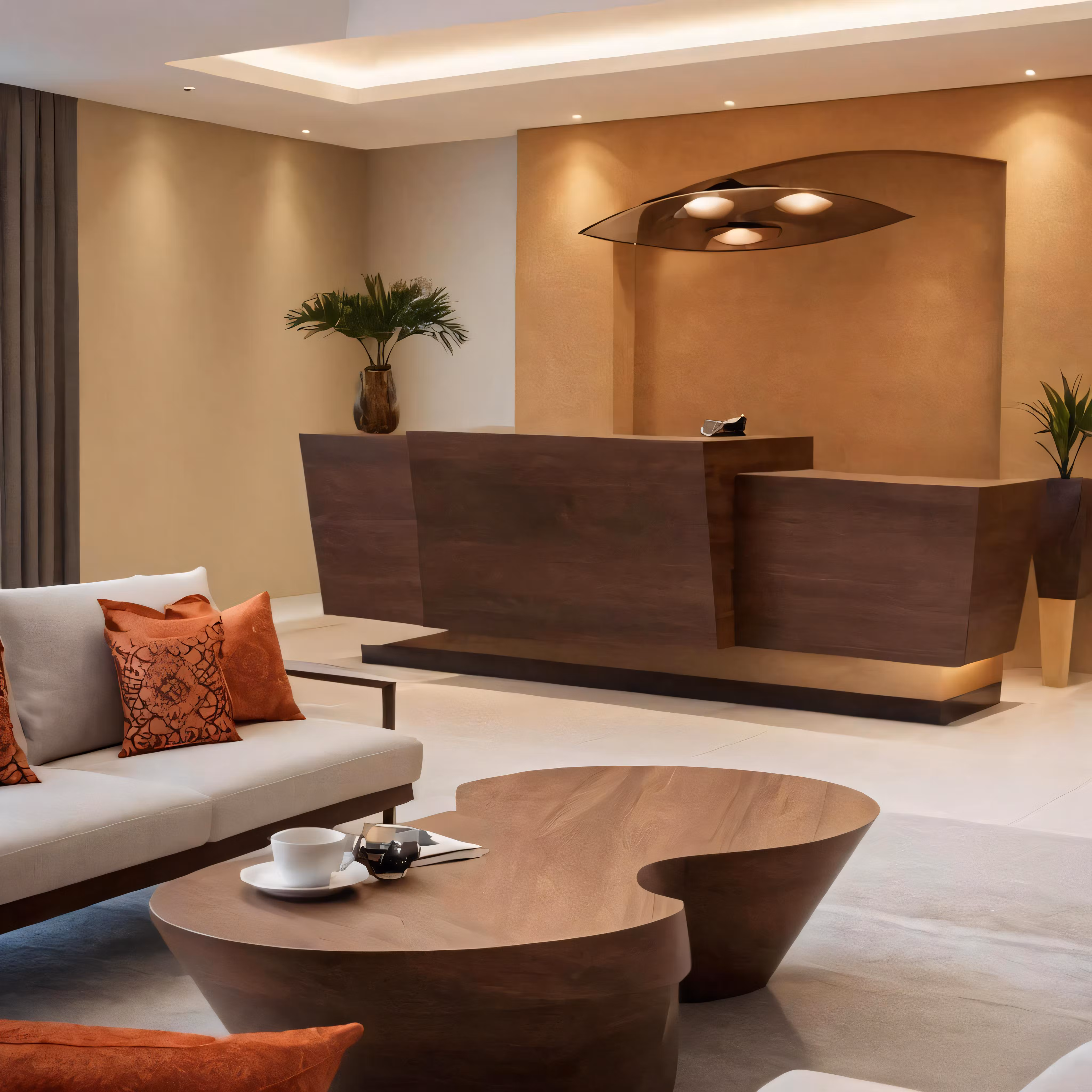 High resolution picture, free to use, the official logo for the 50 /a large hotel lobby decorated with modern furniture