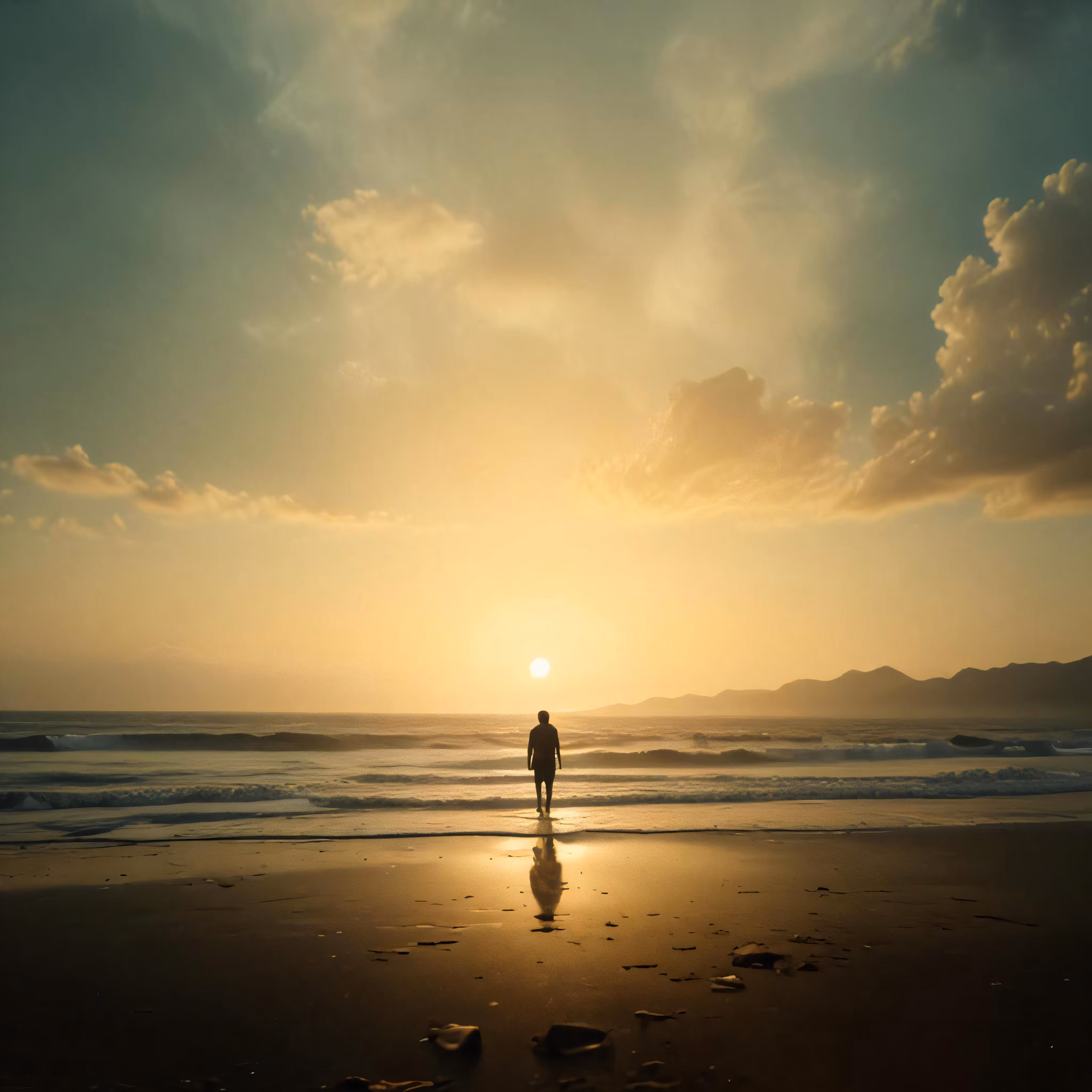 High resolution picture, free to use, the official logo for the 50 /a man standing in the sun on a beach