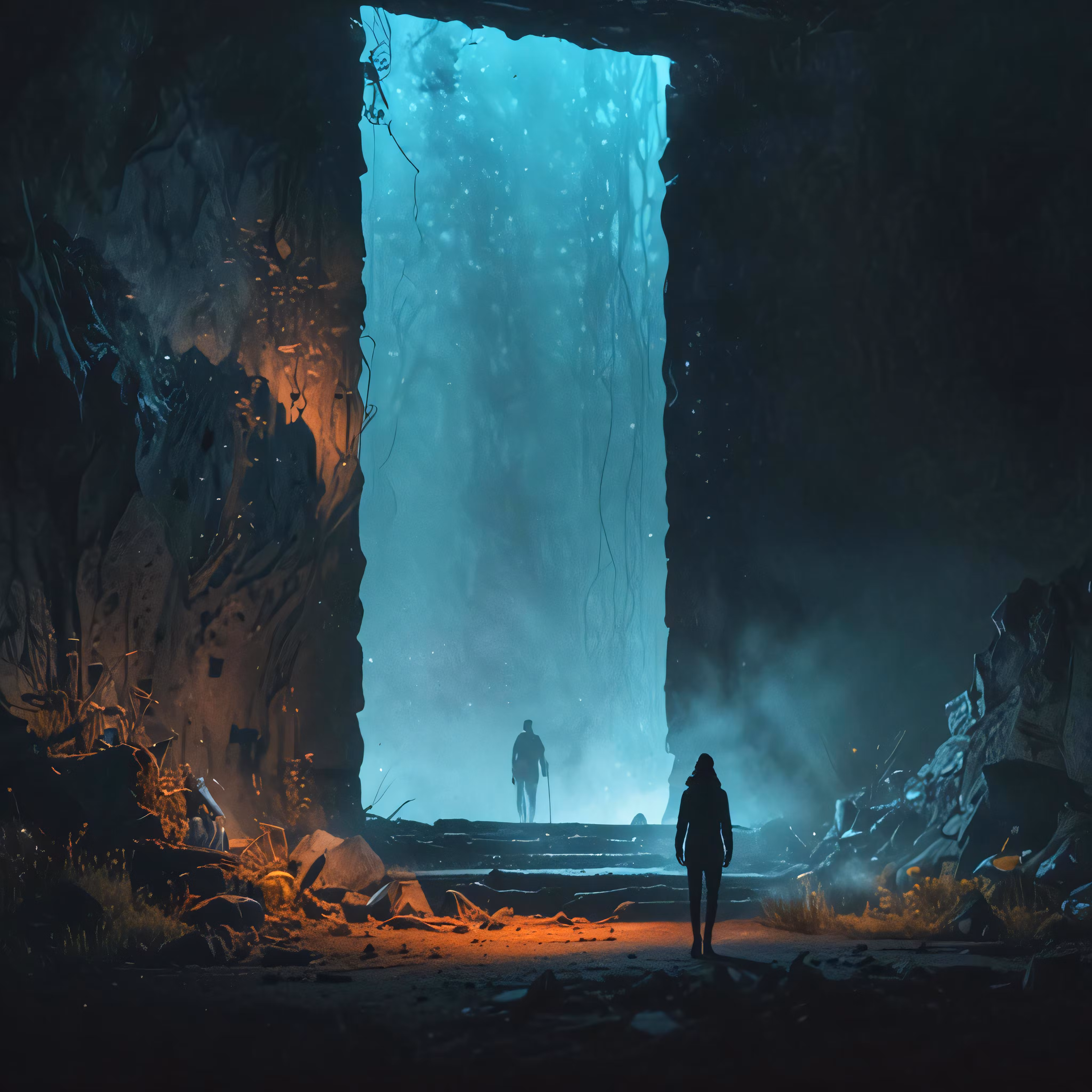 High resolution picture, free to use, the official logo for the 50 /a man walks into a narrow, dark cave