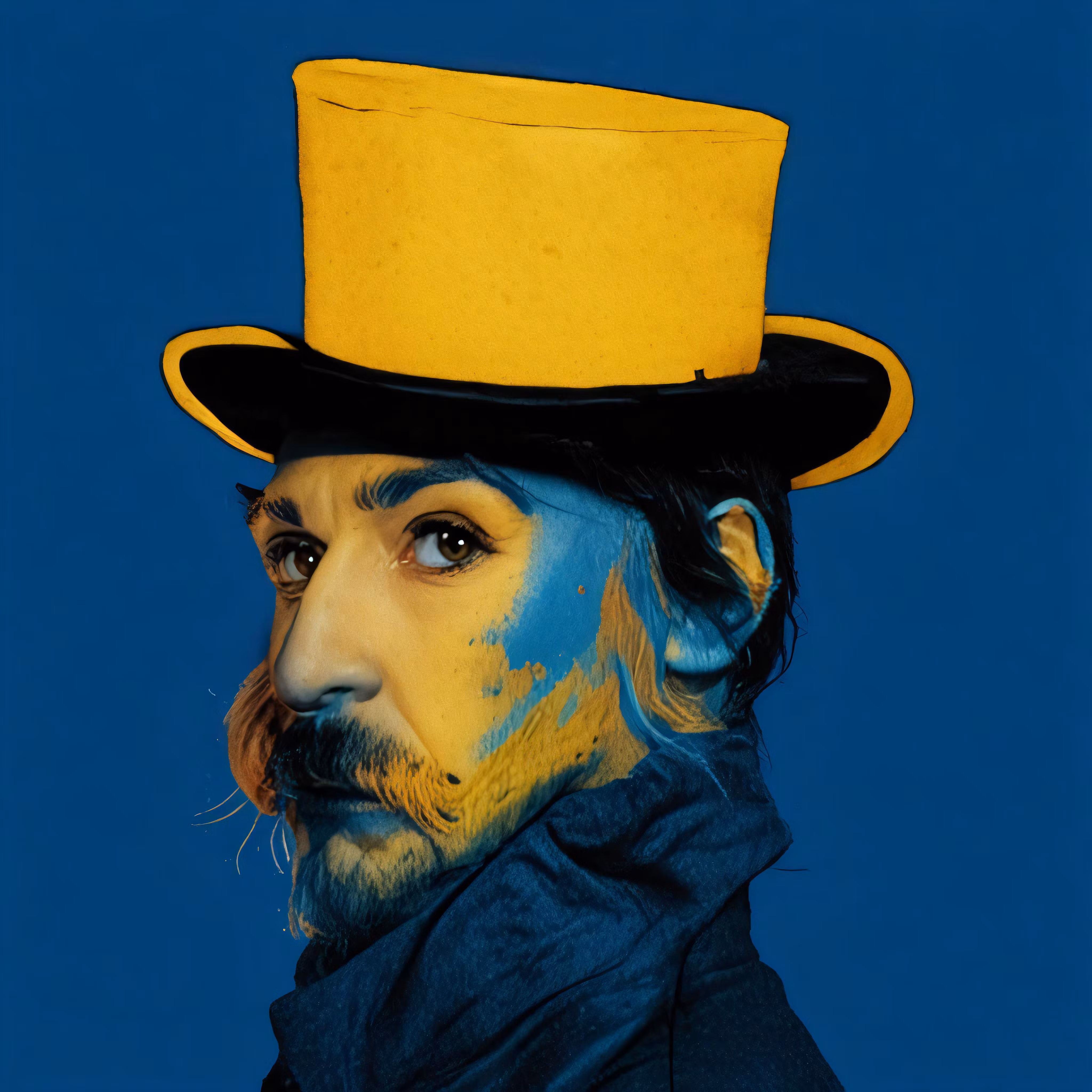 High resolution picture, free to use, the official logo for the 50 /a man wearing an odd hat and a very colorful coat