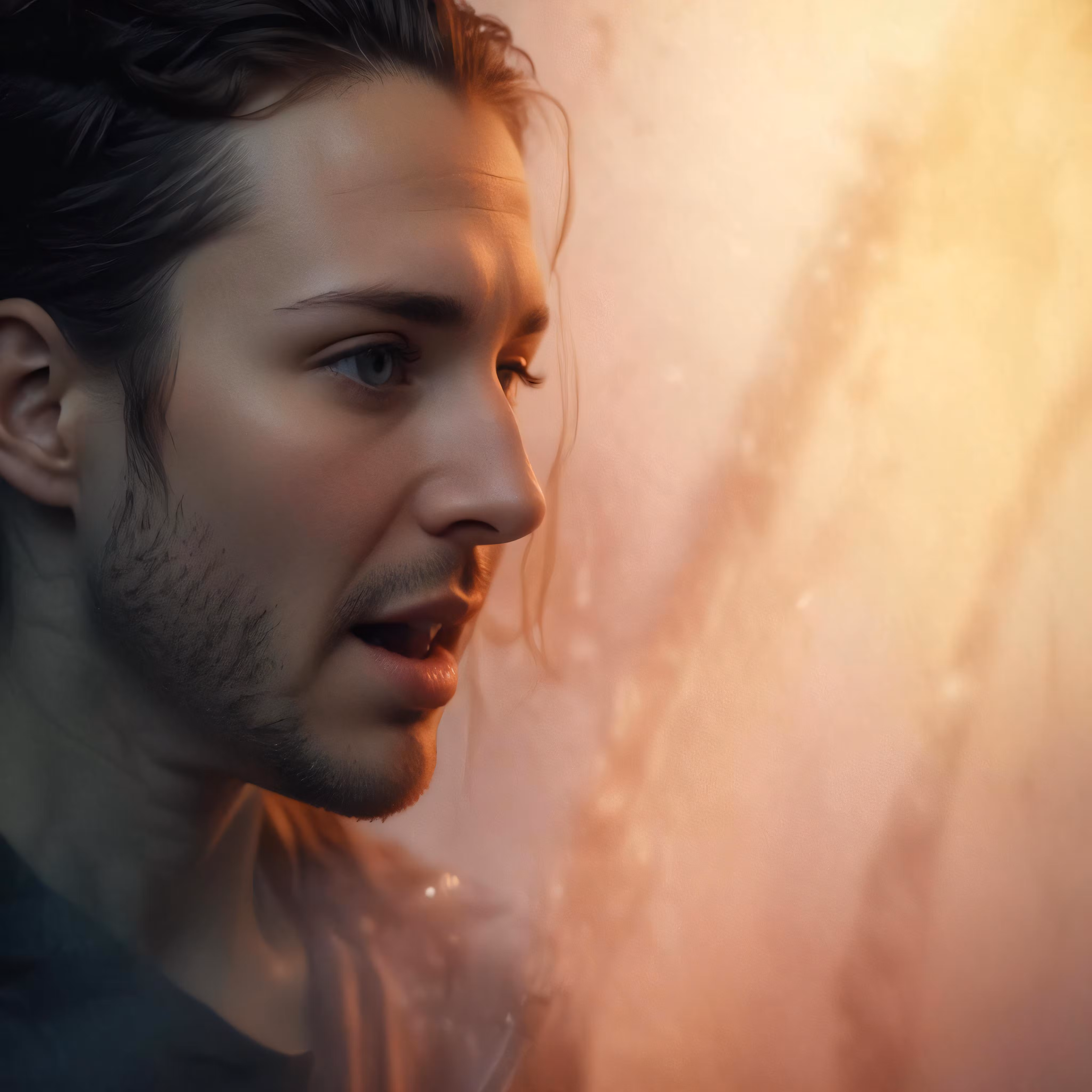 High resolution picture, free to use, the official logo for the 50 /a man with hair pulled back and looking to his right