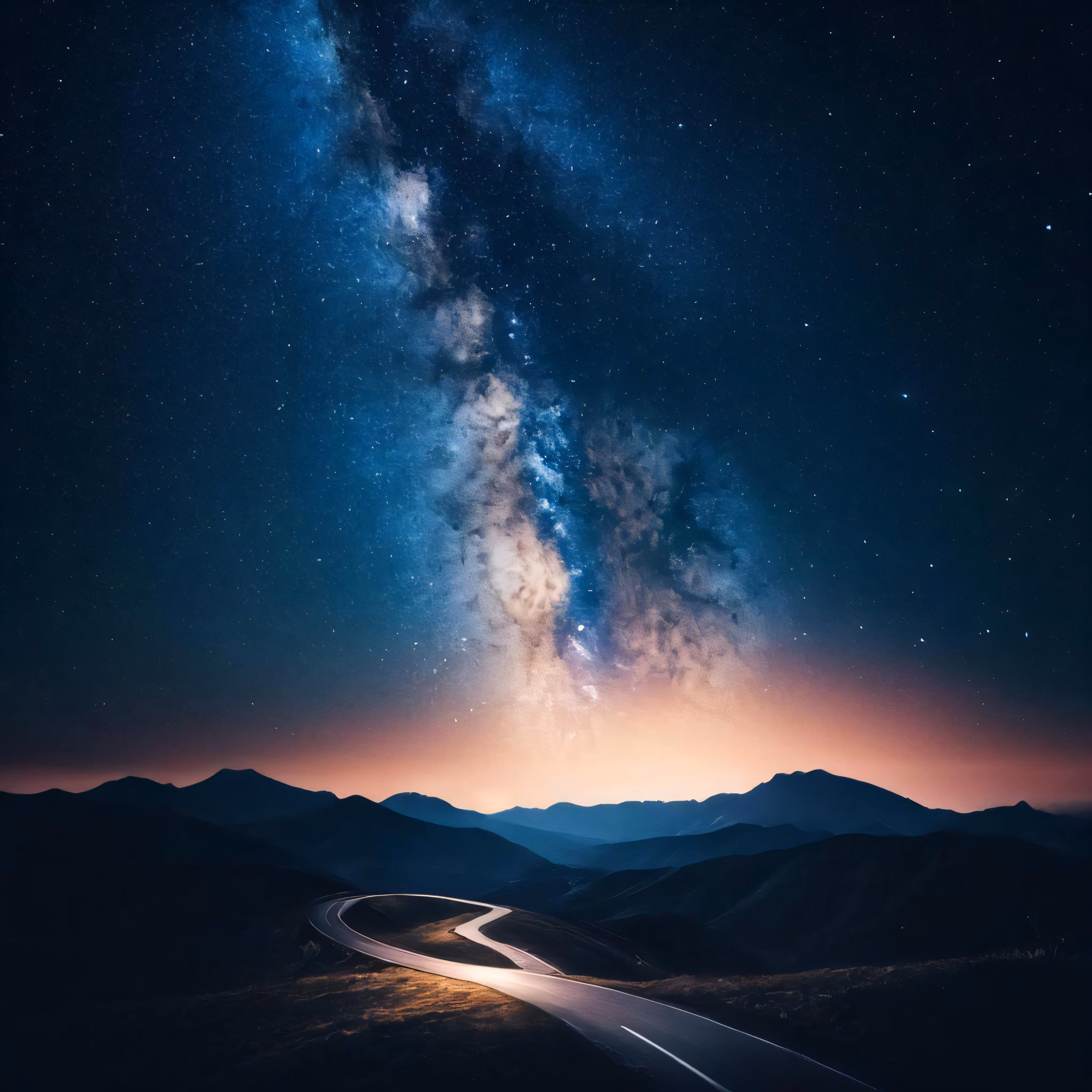 High resolution picture, free to use, the official logo for the 50 /a night sky and the milky with a car driving down a road