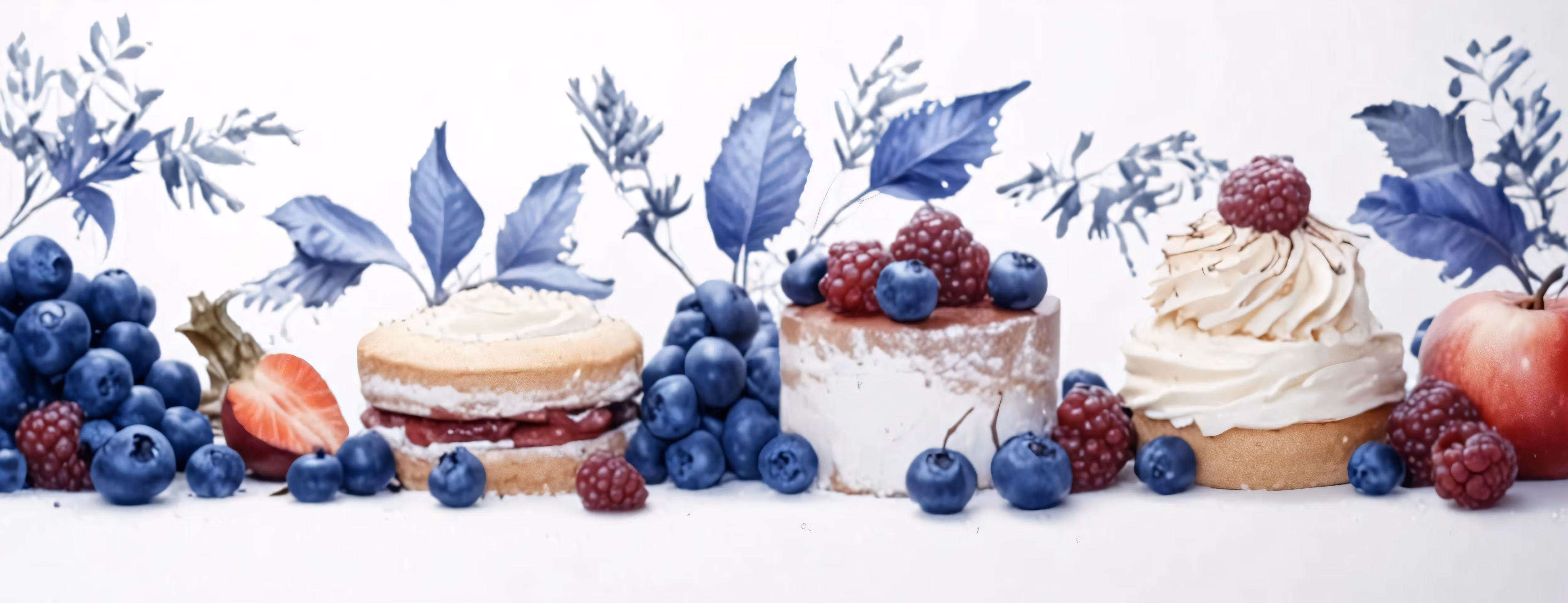 High resolution picture, free to use, the official logo for the 50 /a painting of fruit with cupcakes and berries