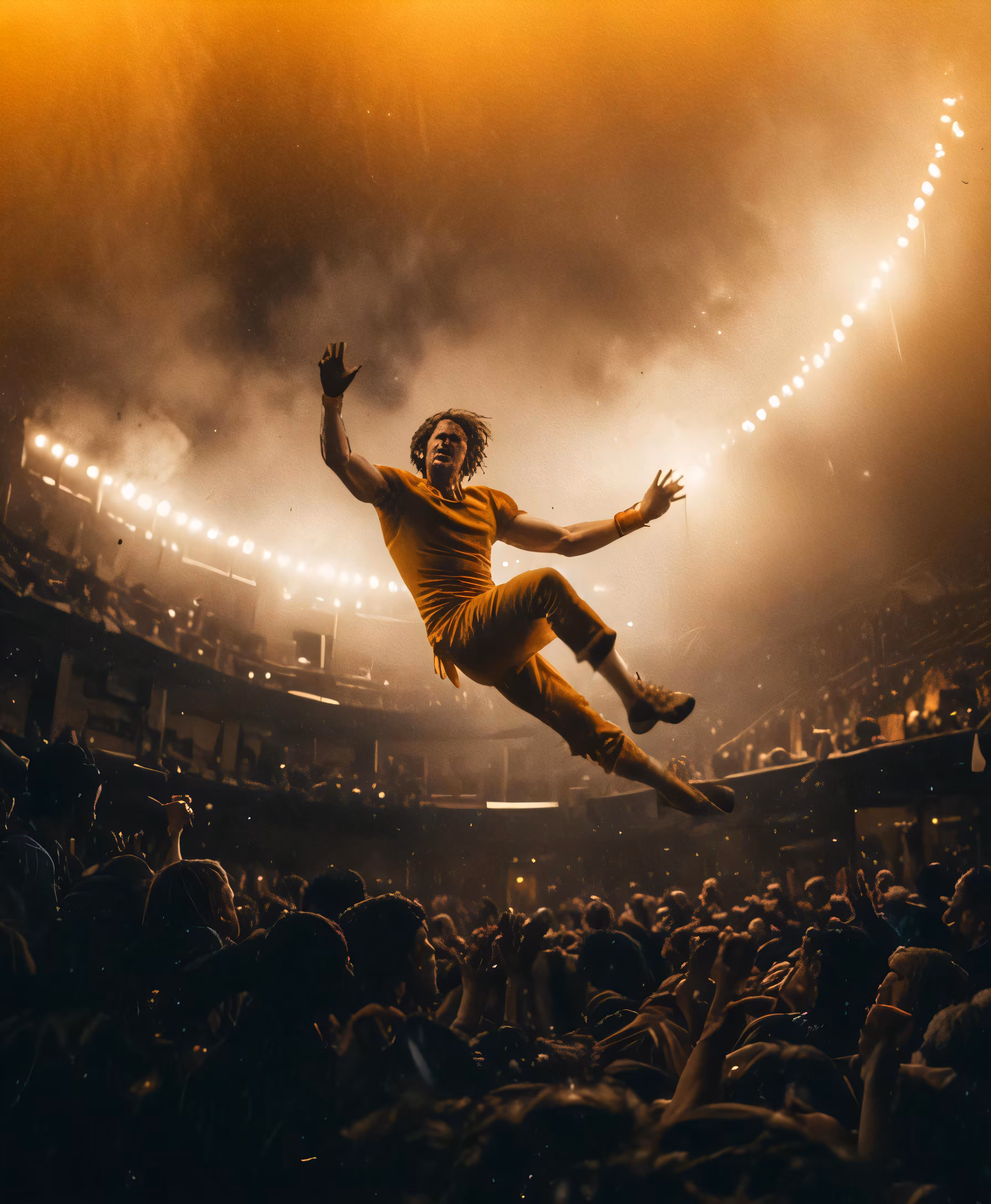 High resolution picture, free to use, the official logo for the 50 /a person jumps in the air at a concert