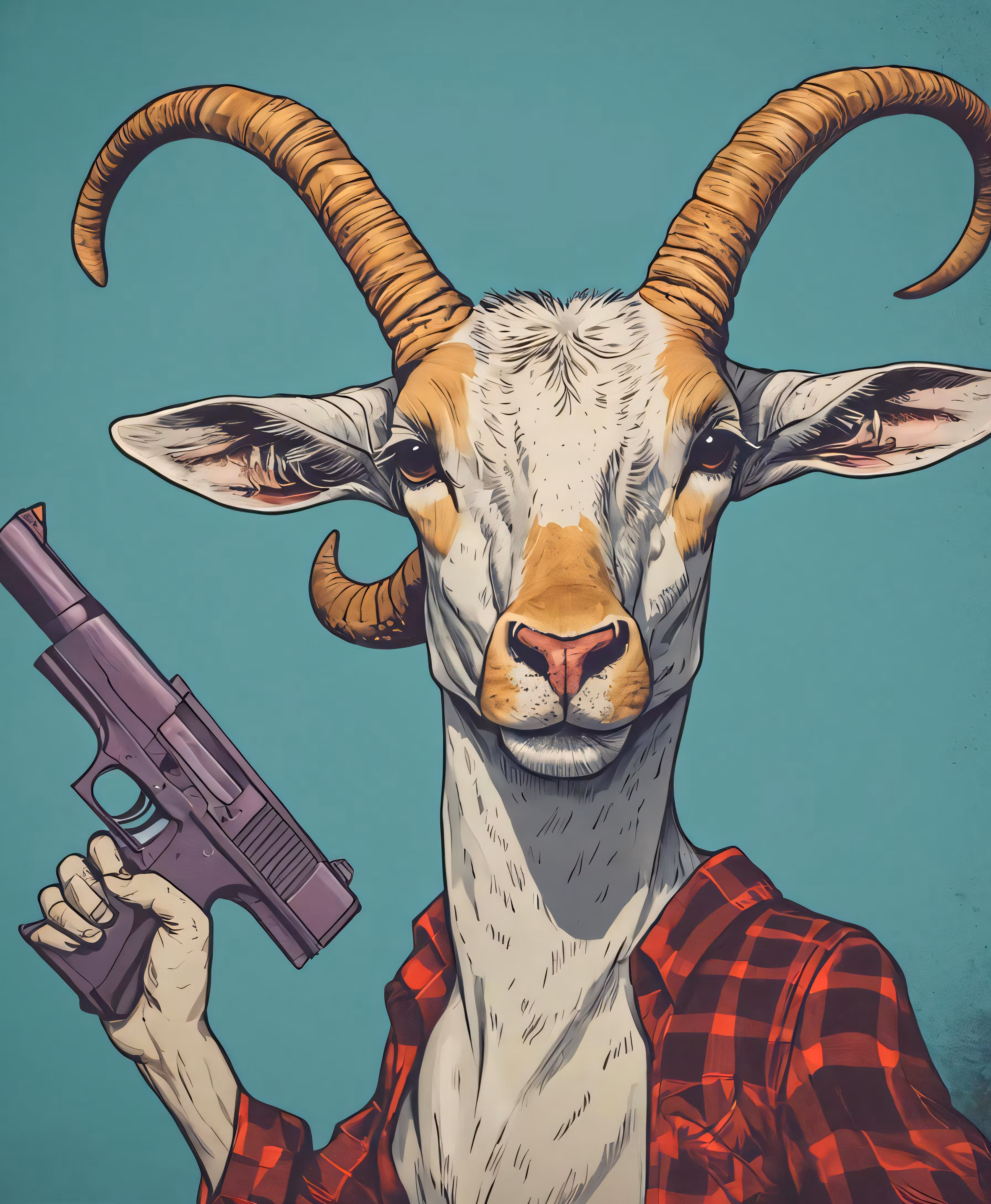 High resolution picture, free to use, the official logo for the 50 /a person wearing a goat mask holding a gun