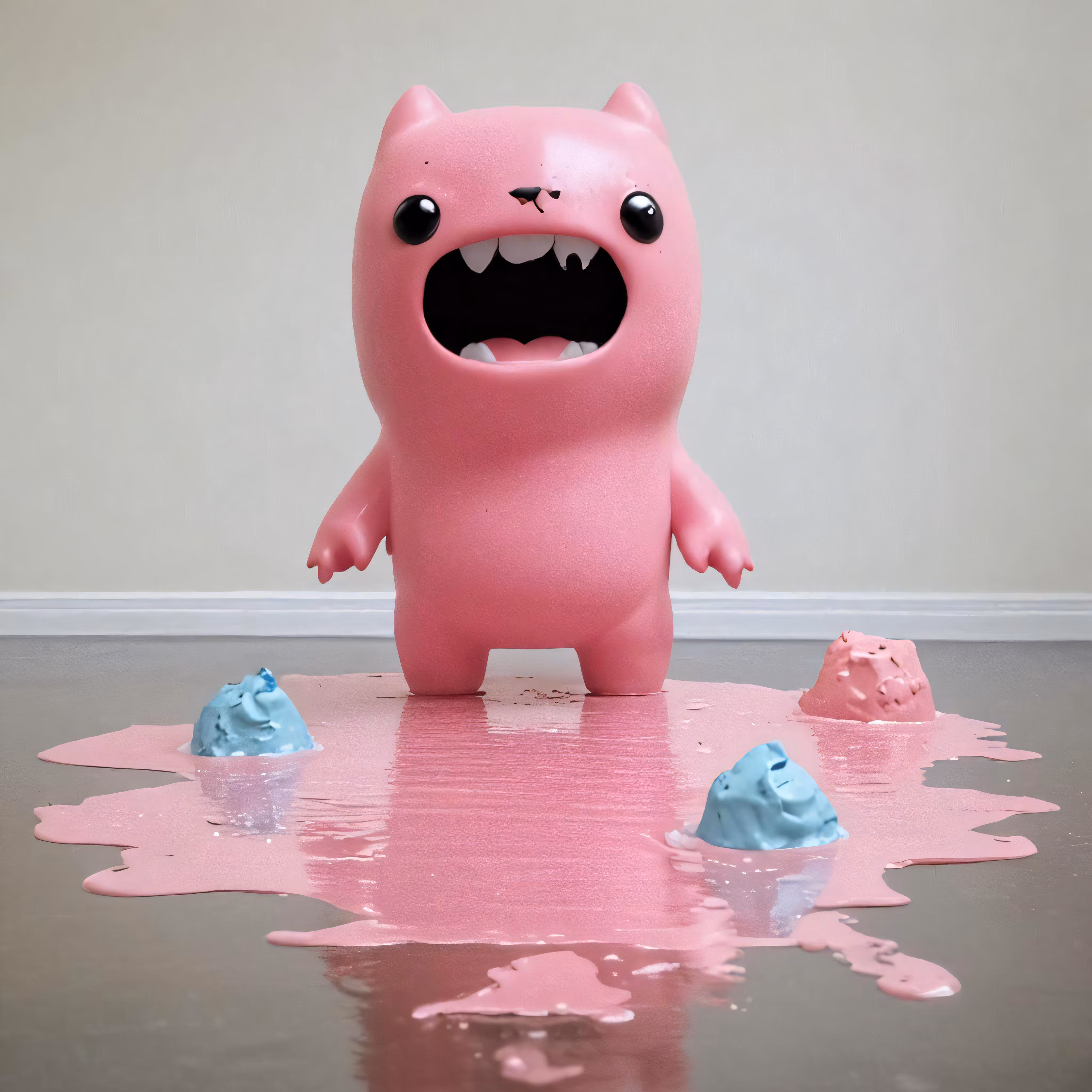 High resolution picture, free to use, the official logo for the 50 /a pink monster stands in front of a bunch of spilled mud