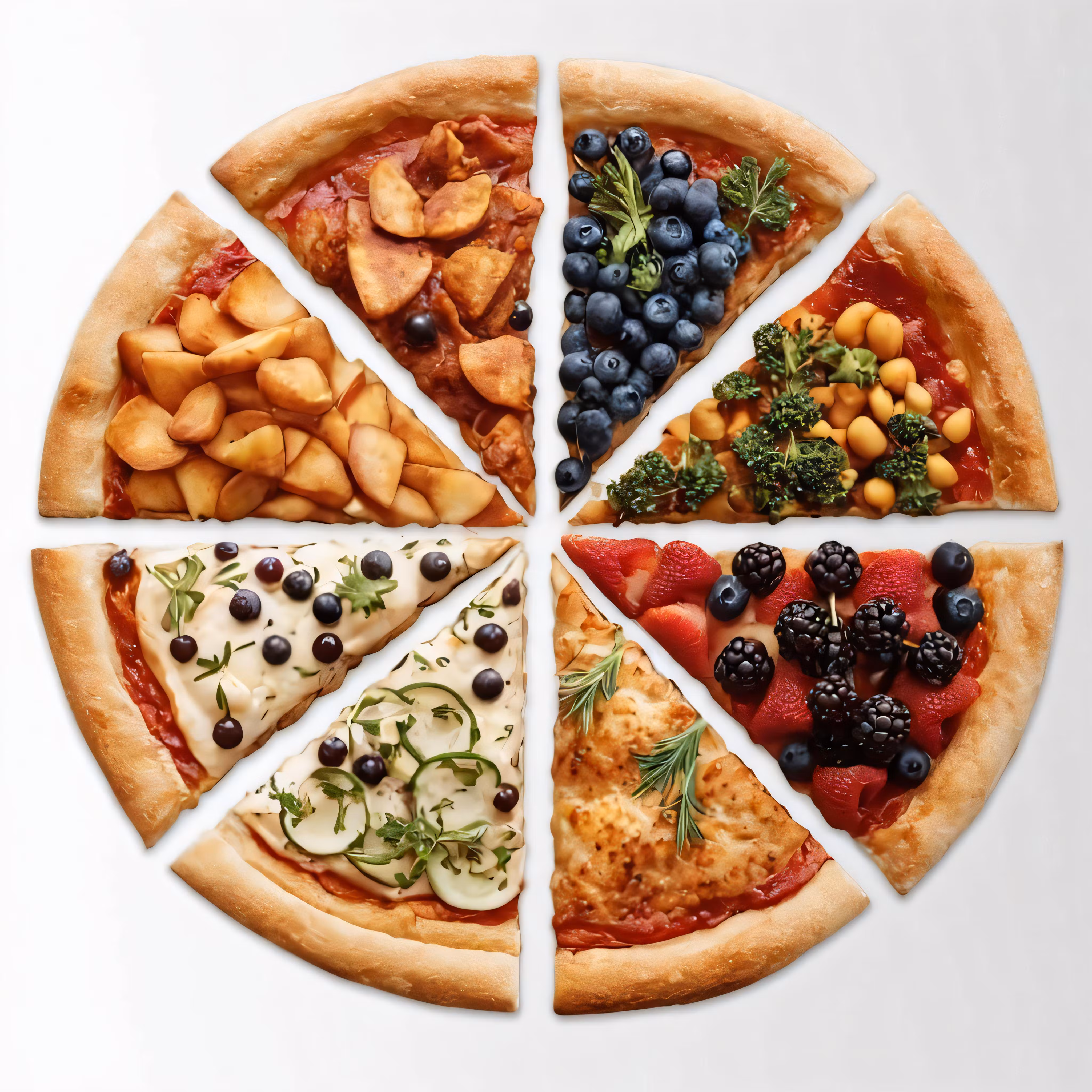 High resolution picture, free to use, the official logo for the 50 /a pizza pie has many different fruits on it