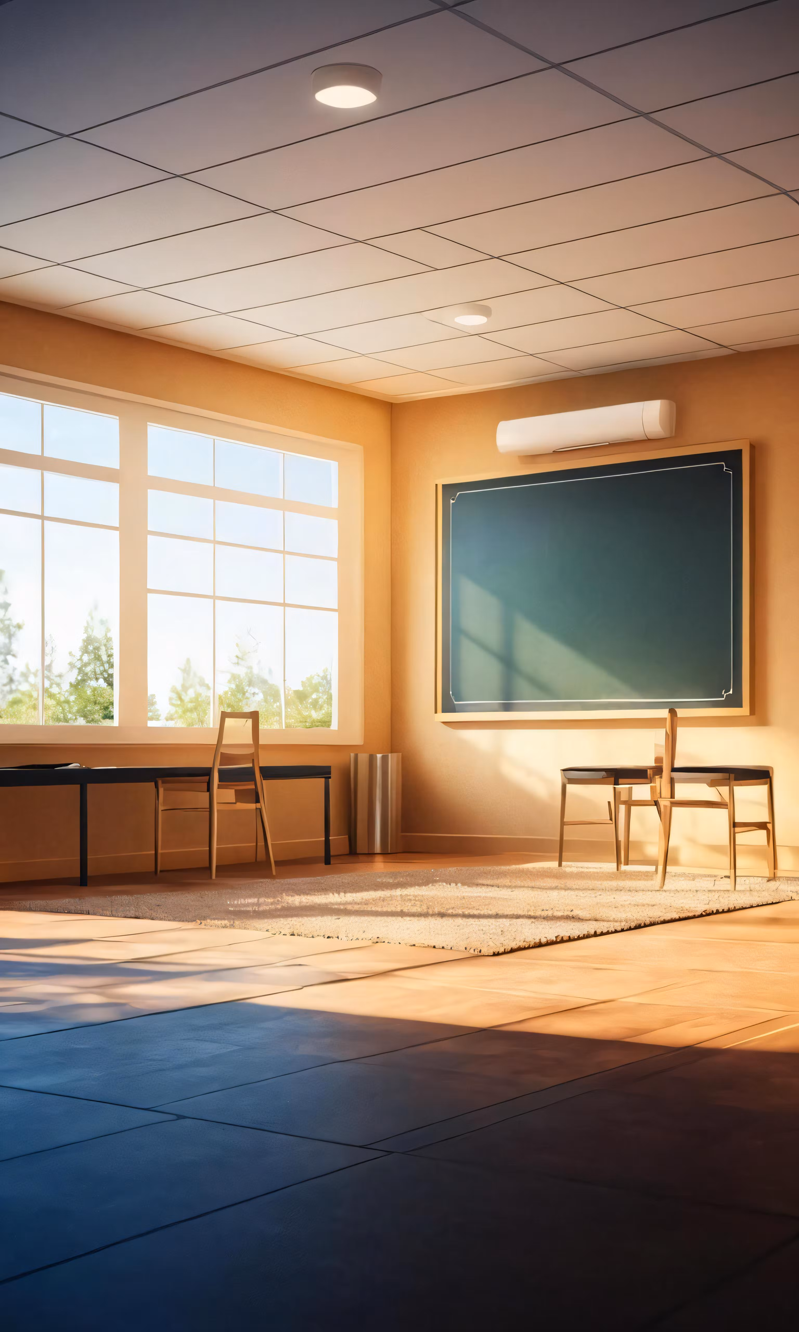 High resolution picture, free to use, the official logo for the 50 /a room with chairs and a large chalk board on the wall