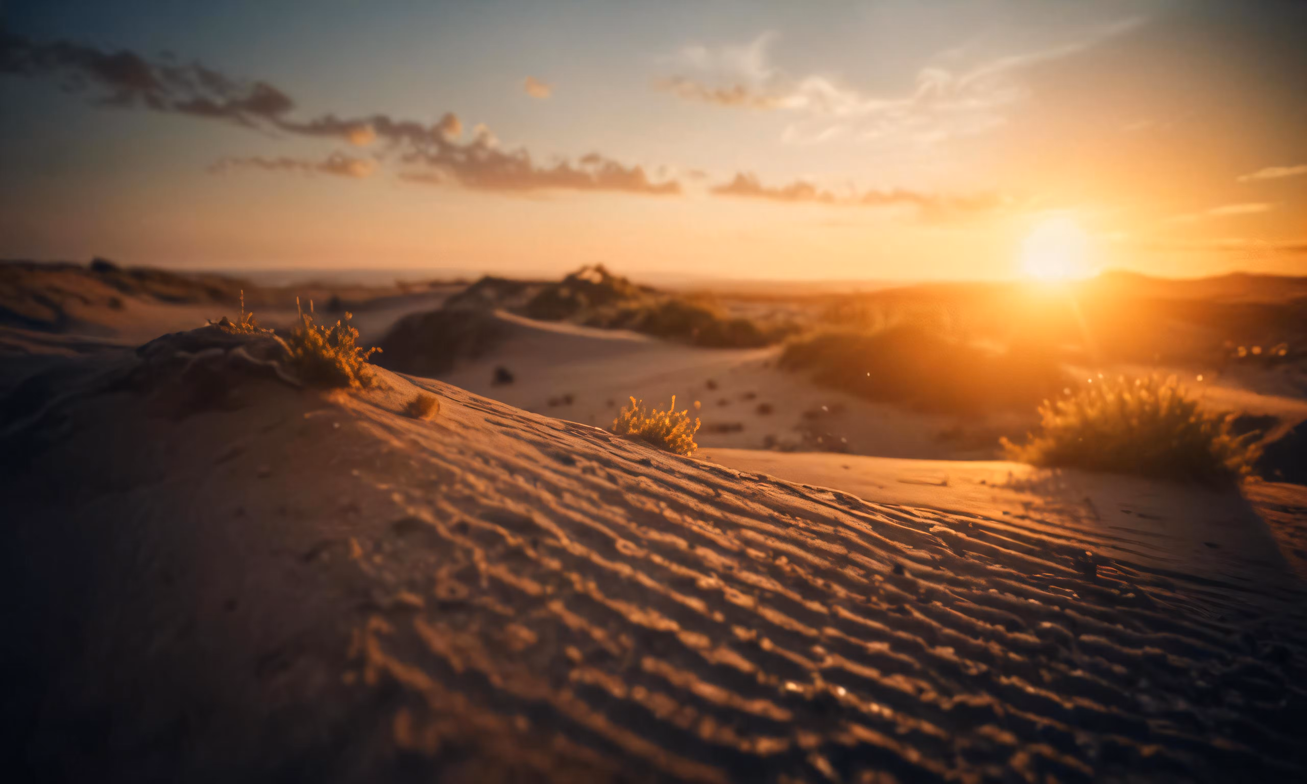 High resolution picture, free to use, the official logo for the 50 /a sunset with small bushes on top of sand dunes