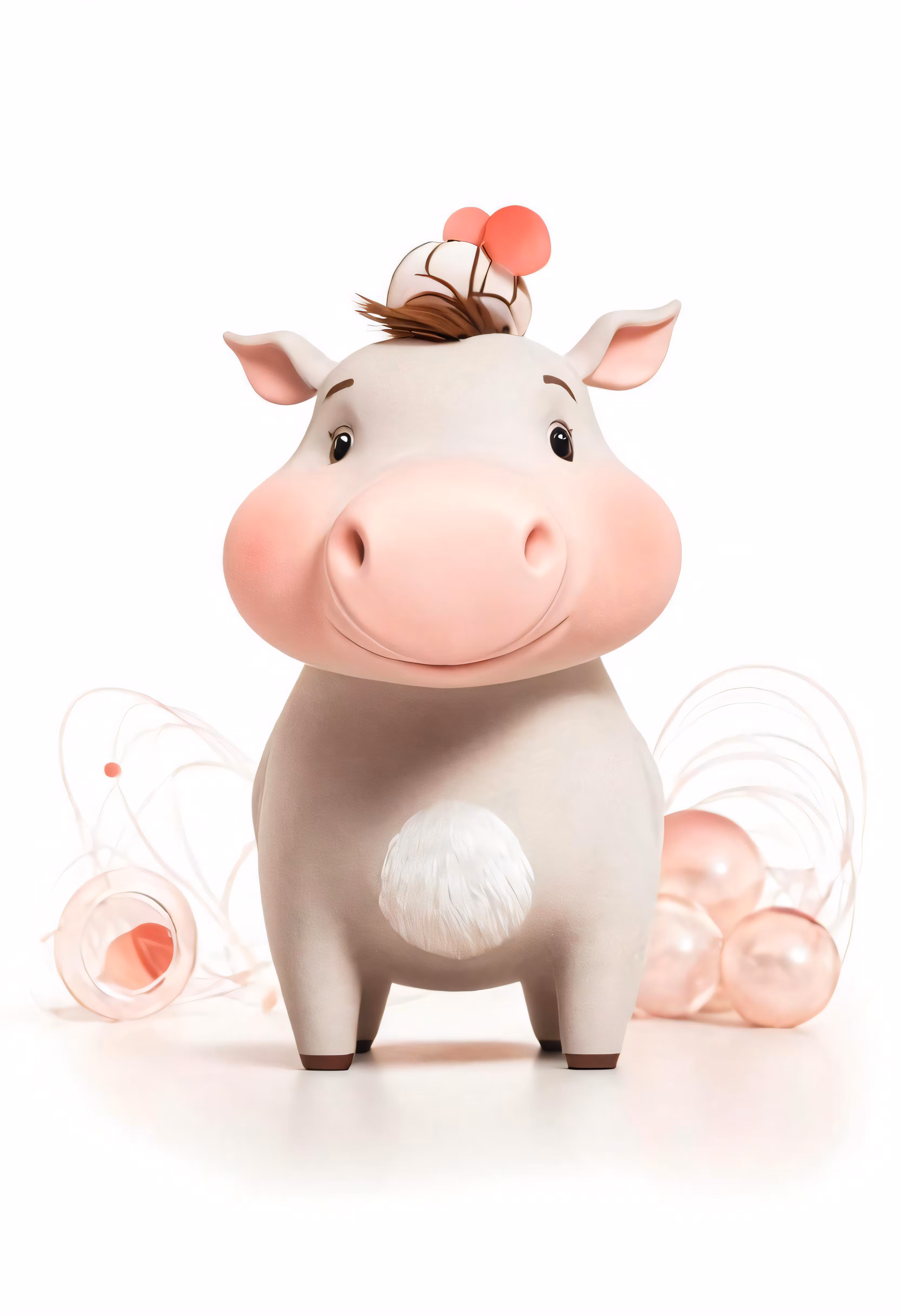 High resolution picture, free to use, the official logo for the 50 /a toy cow standing in front of some bubbles