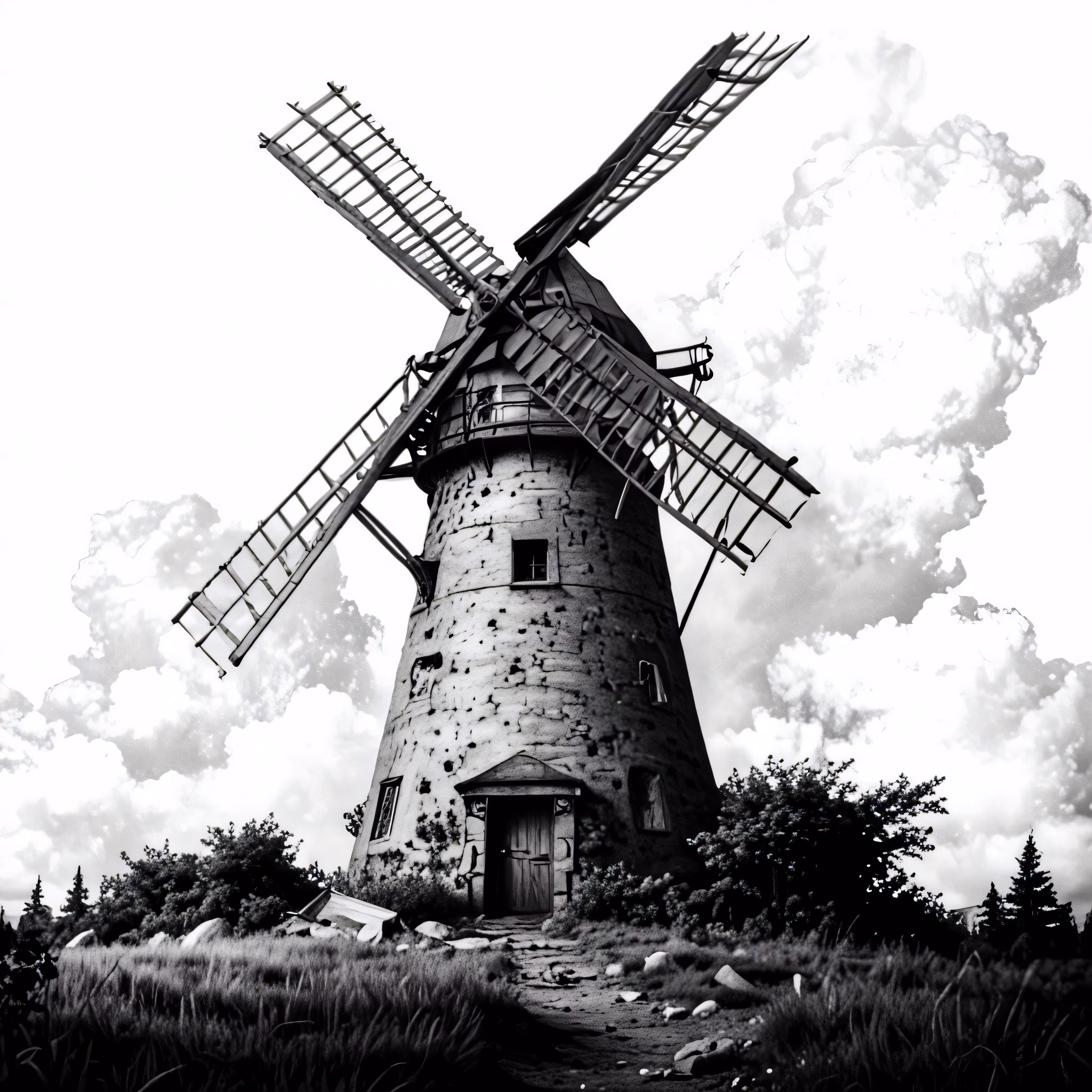 High resolution picture, free to use, the official logo for the 50 /a very tall windmill sitting on top of a hill