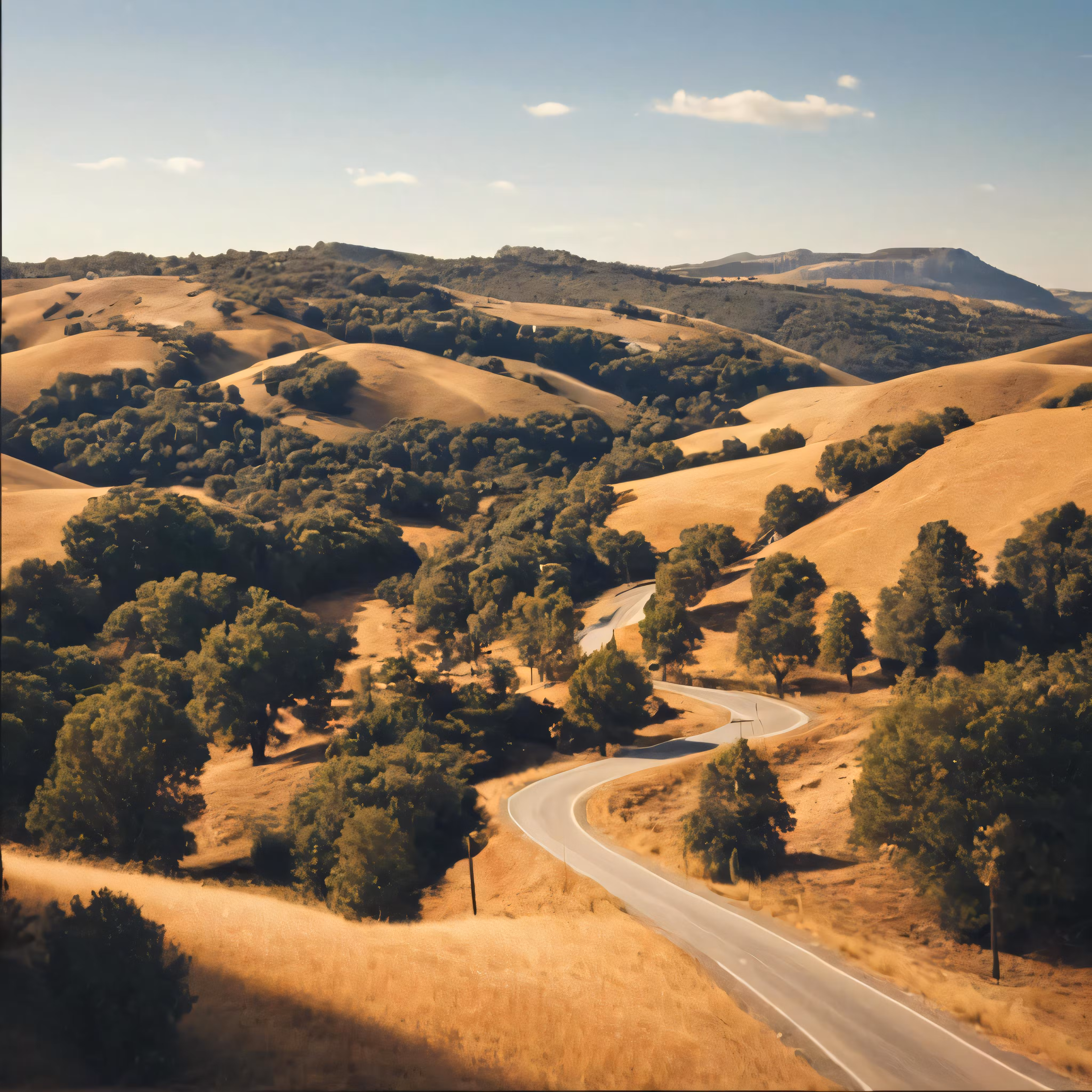 High resolution picture, free to use, the official logo for the 50 /a view of a winding road through some grass