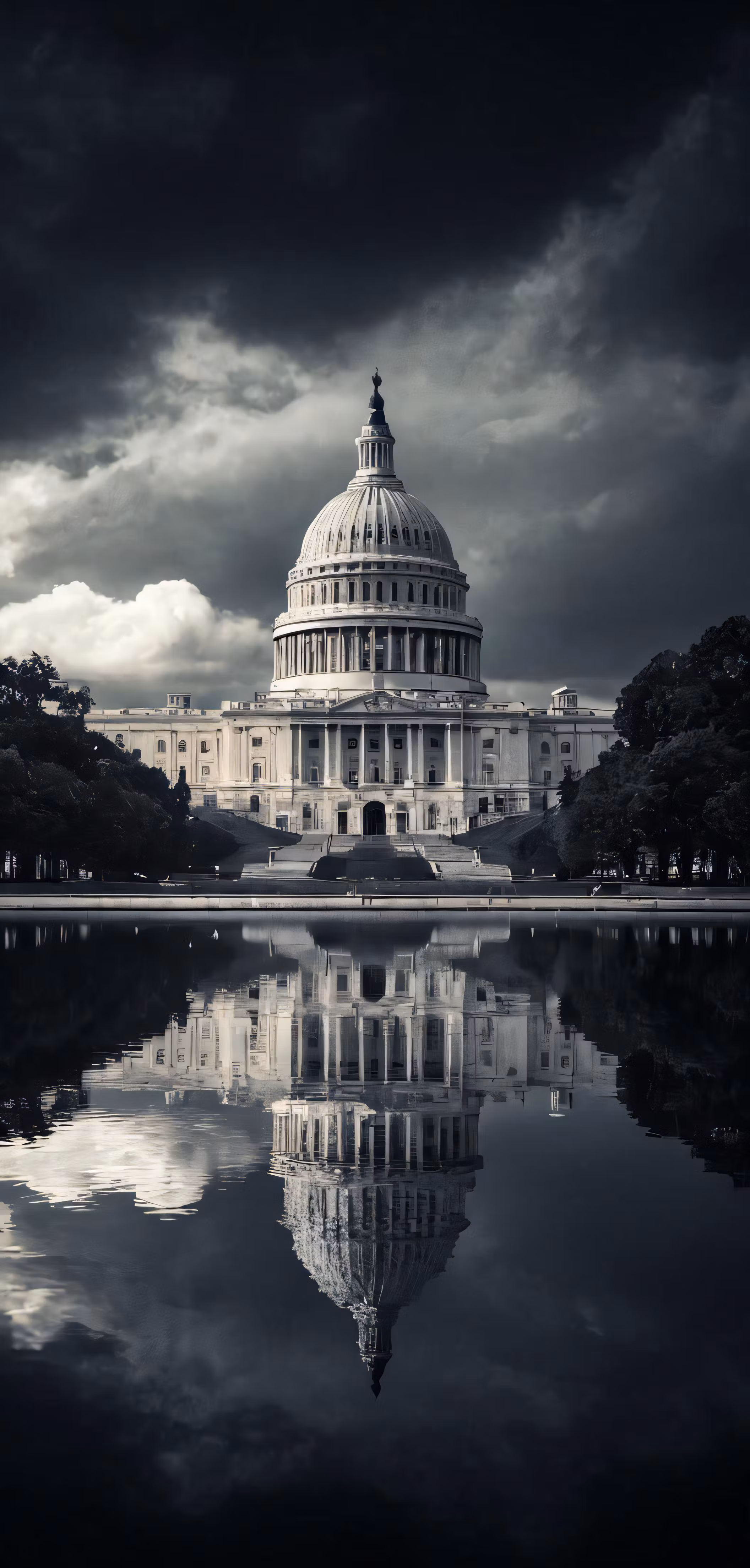 High resolution picture, free to use, the official logo for the 50 /a view of the white house from across the water with the dome reflecting in the water