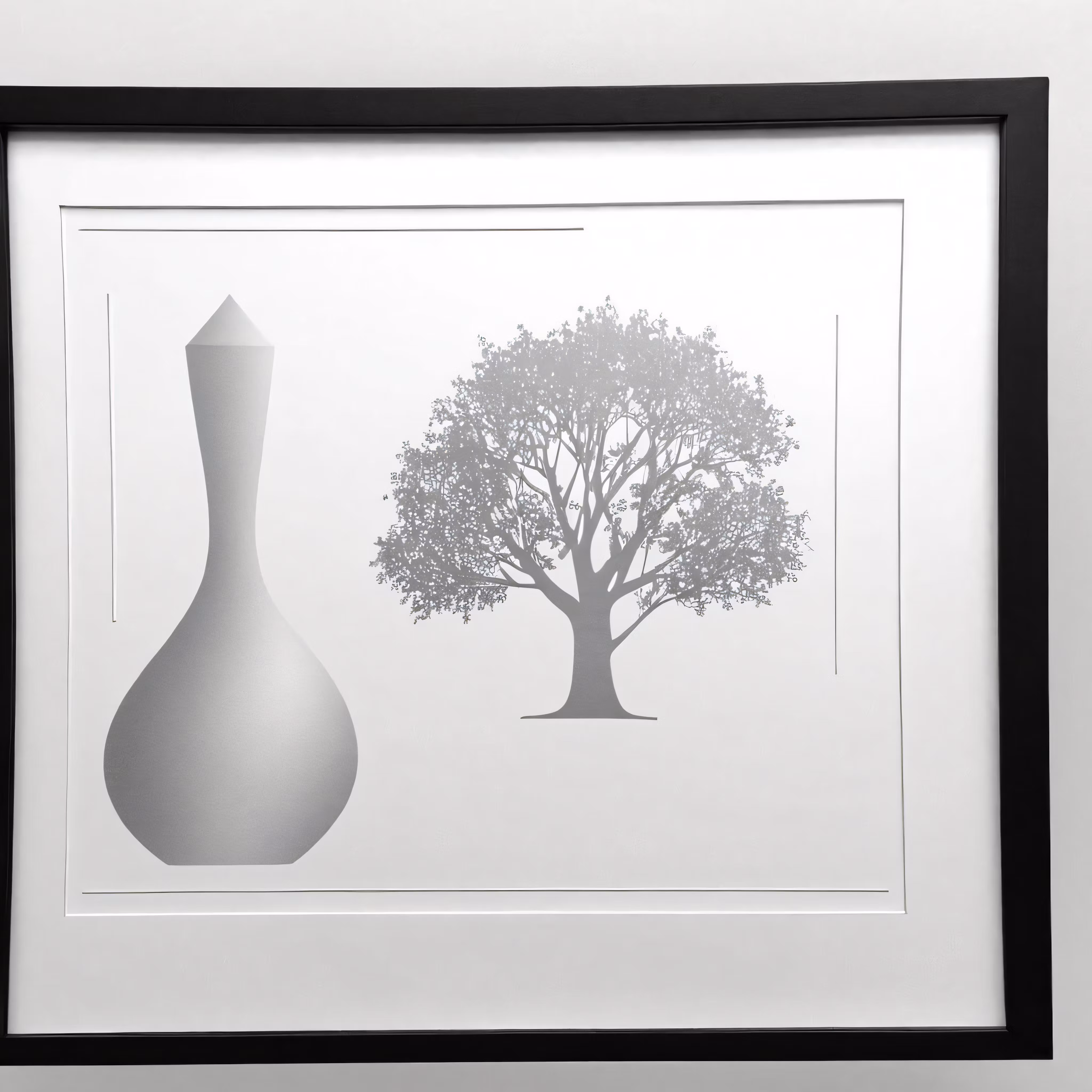 High resolution picture, free to use, the official logo for the 50 /a wall mounted picture in black frame displaying an image of a vase and a tree