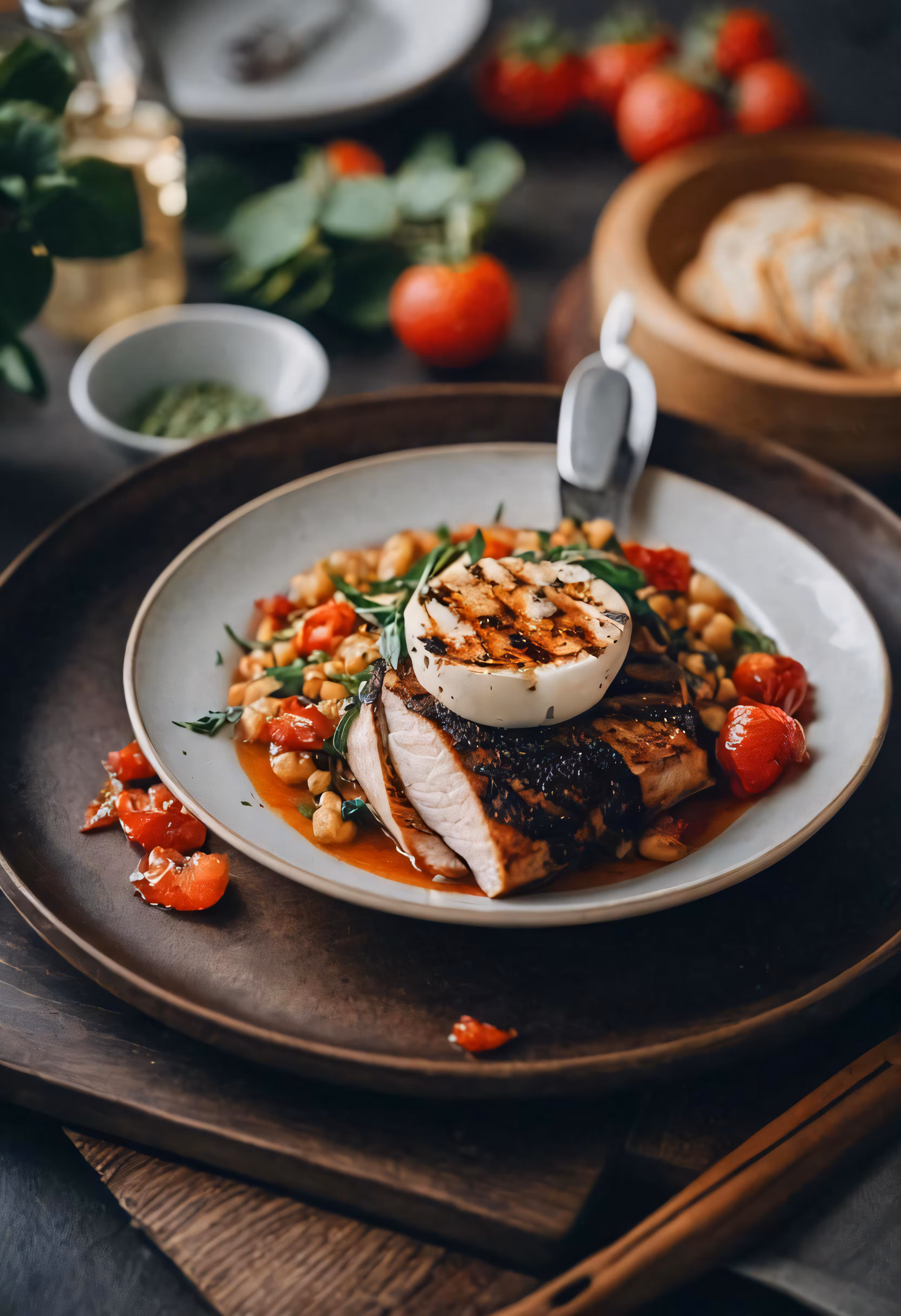High resolution picture, free to use, the official logo for the 50 /a white plate topped with a dish of food