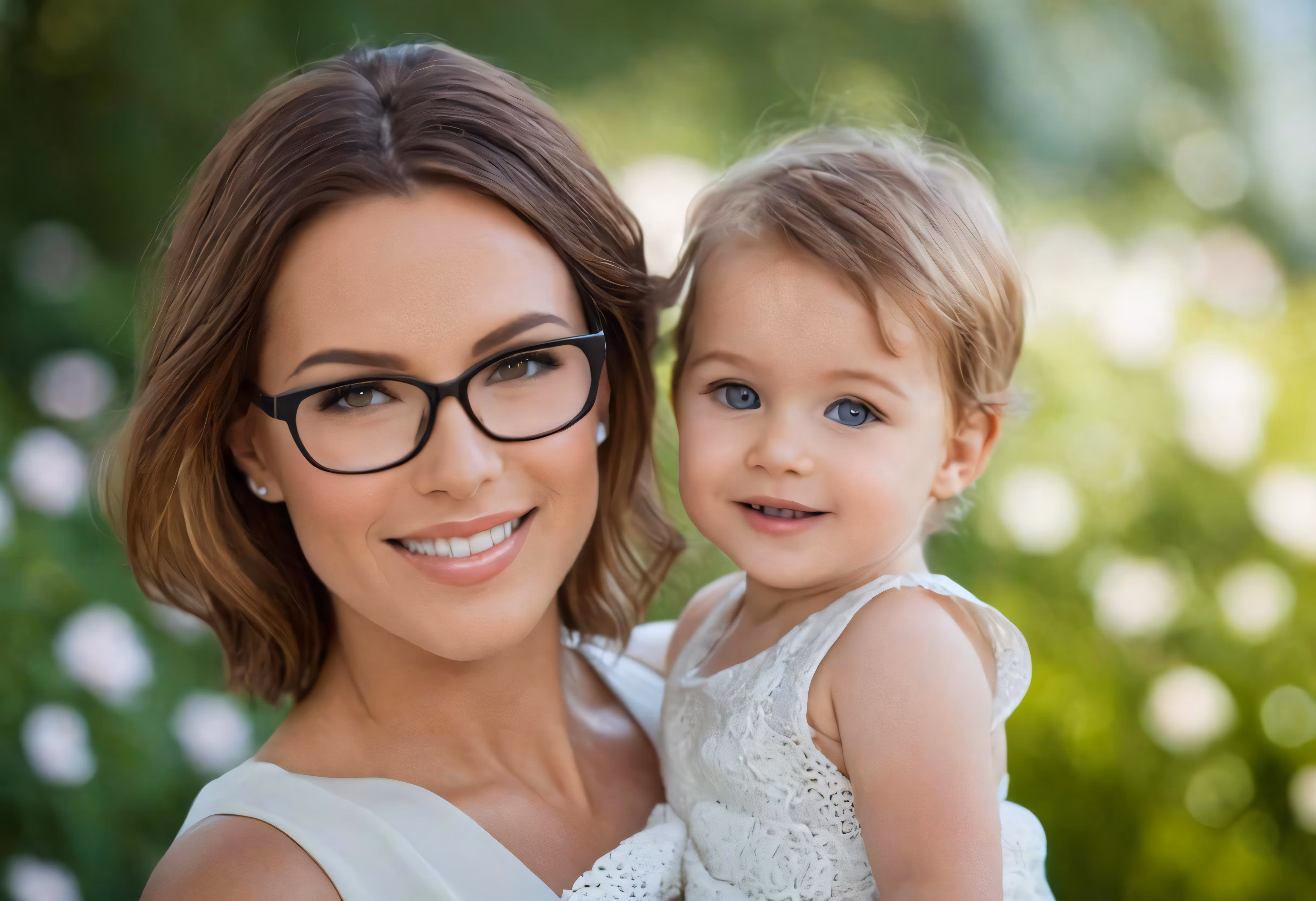 High resolution picture, free to use, the official logo for the 50 /a woman and her daughter wearing eye glasses