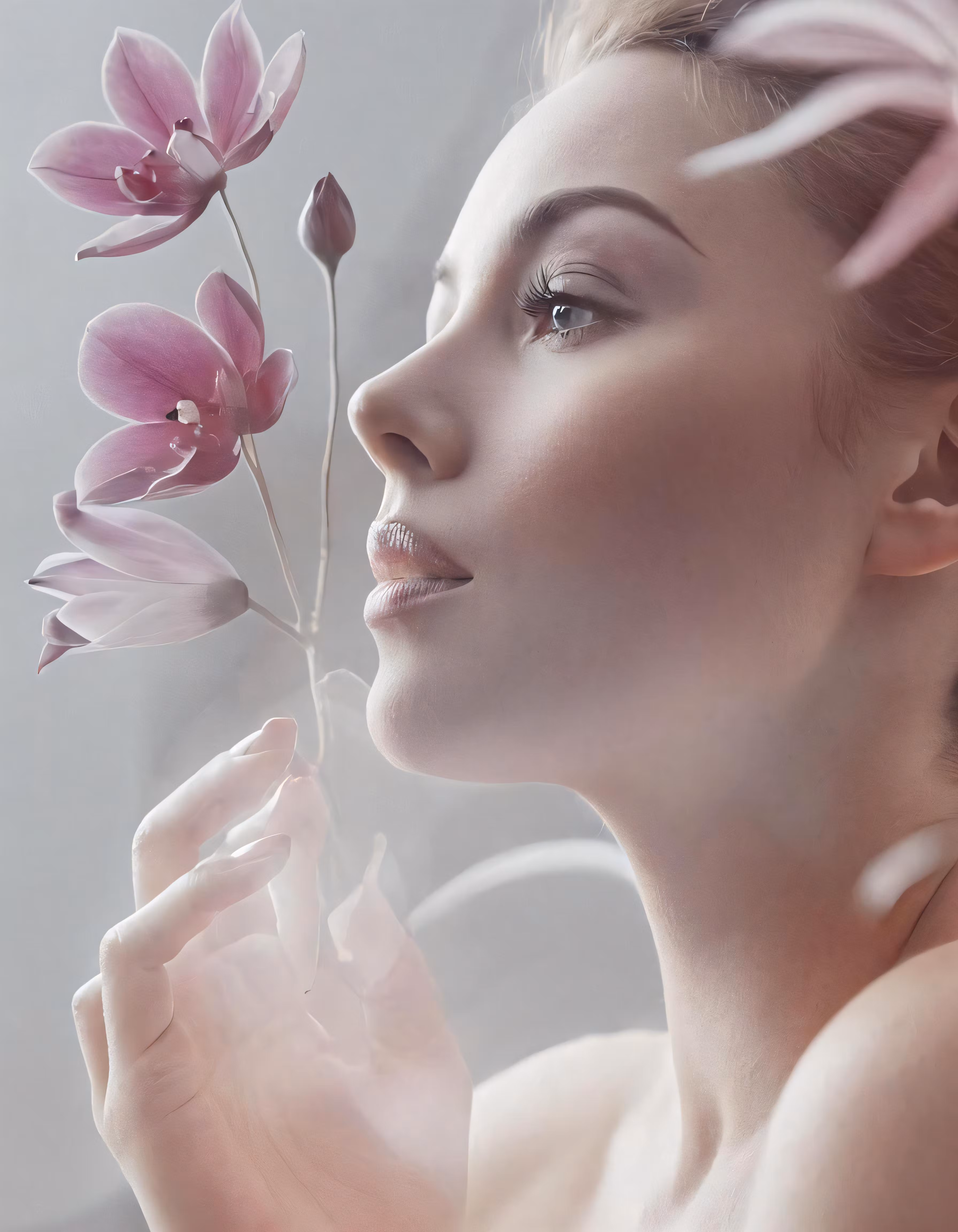High resolution picture, free to use, the official logo for the 50 /a woman holding a plant near her face