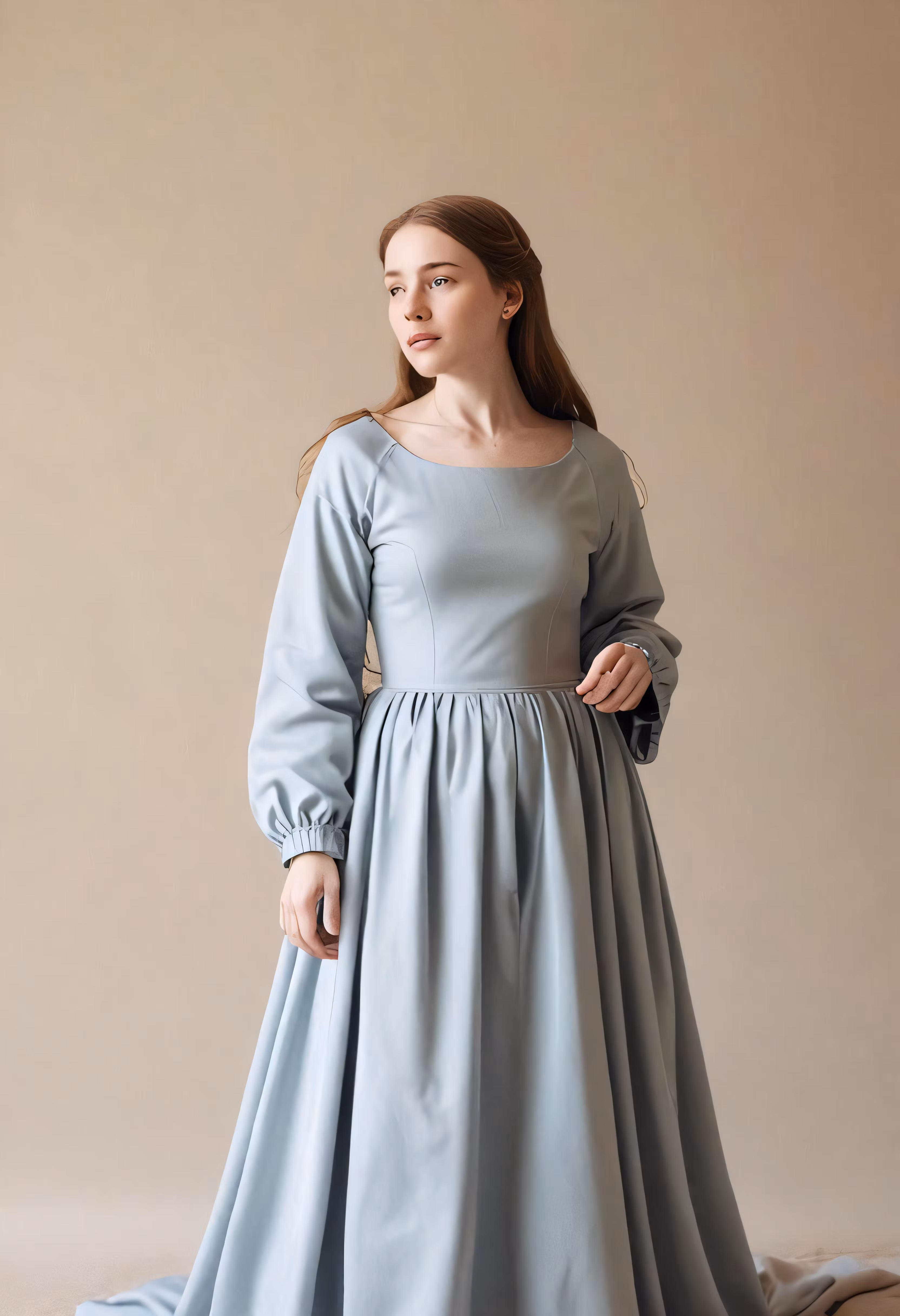 High resolution picture, free to use, the official logo for the 50 /a woman in a blue dress posing for a portrait