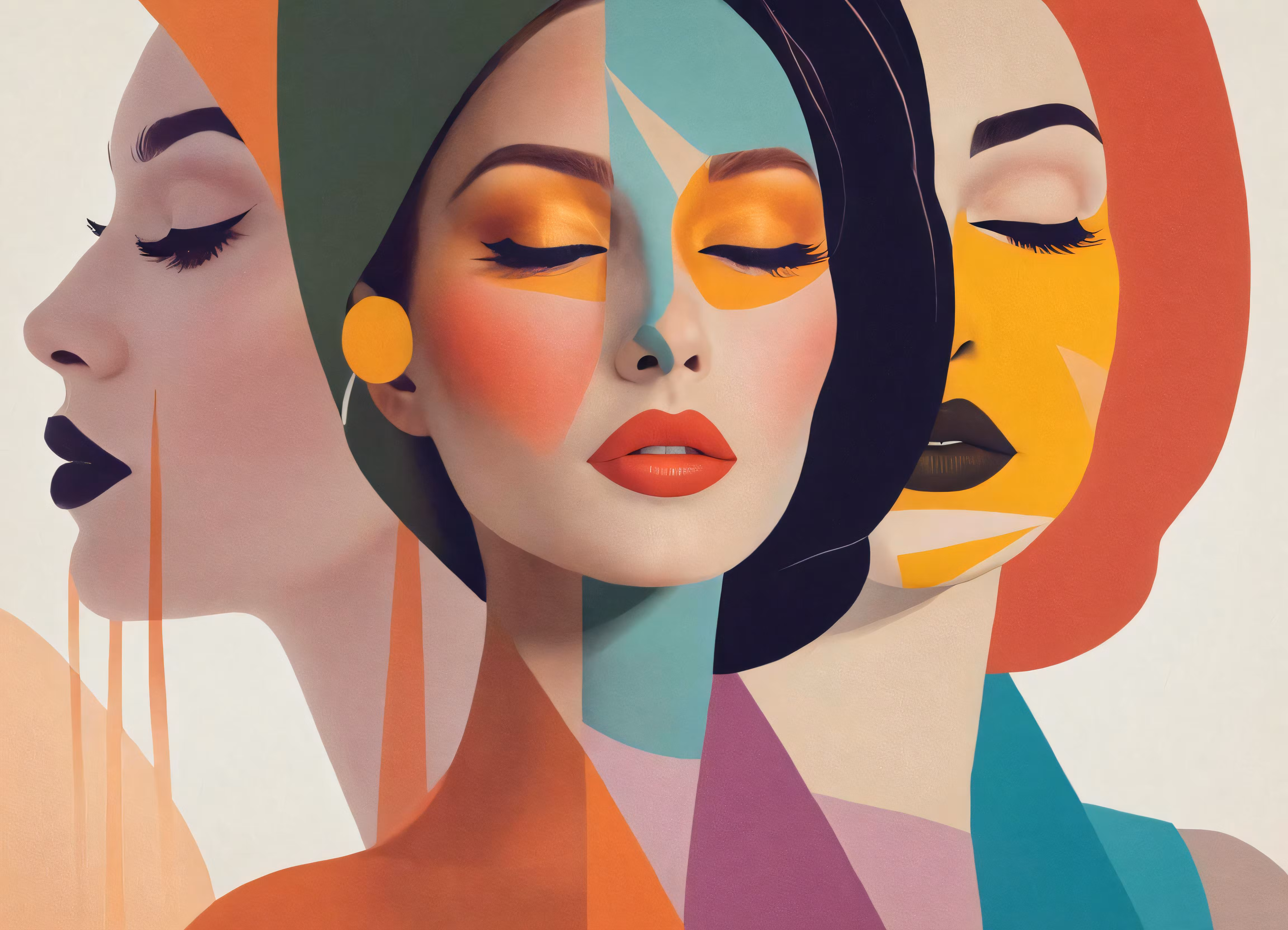 High resolution picture, free to use, the official logo for the 50 /a woman in different color and shapes with bright makeup