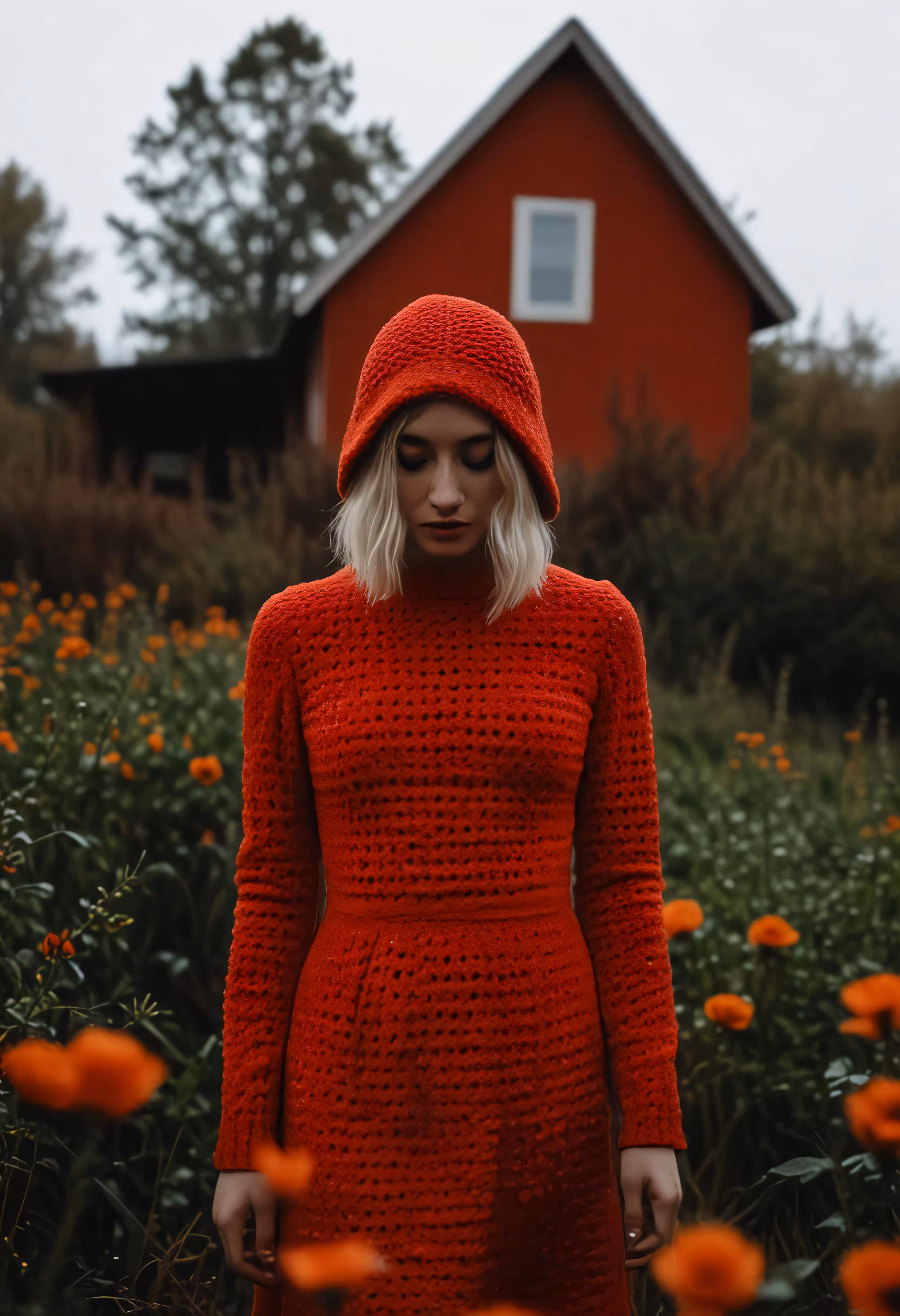 High resolution picture, free to use, the official logo for the 50 /a woman is standing in a field with orange flowers