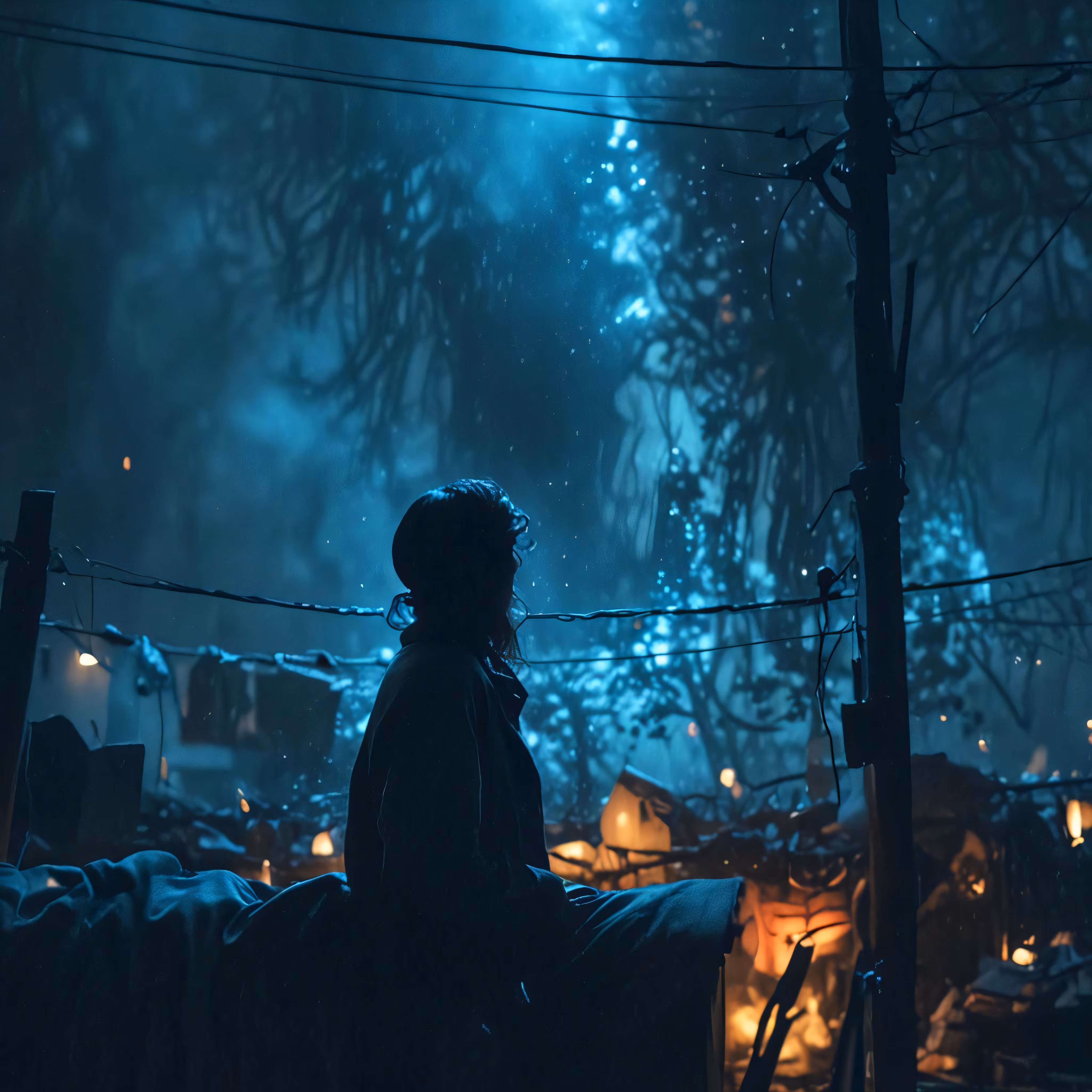 High resolution picture, free to use, the official logo for the 50 /a woman sits in the shadow of her bed at night