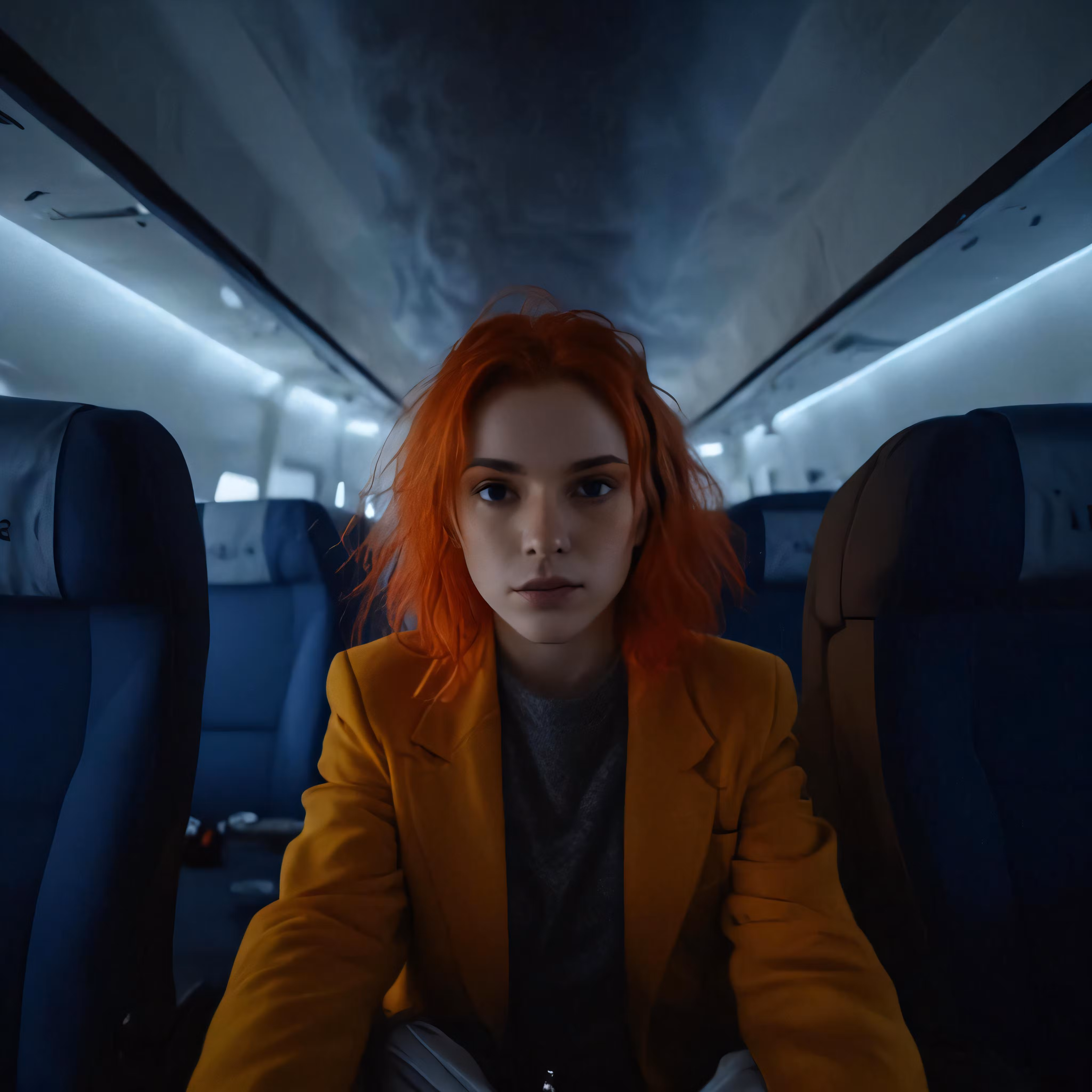 High resolution picture, free to use, the official logo for the 50 /a woman sitting on top of an airplane looking at the camera