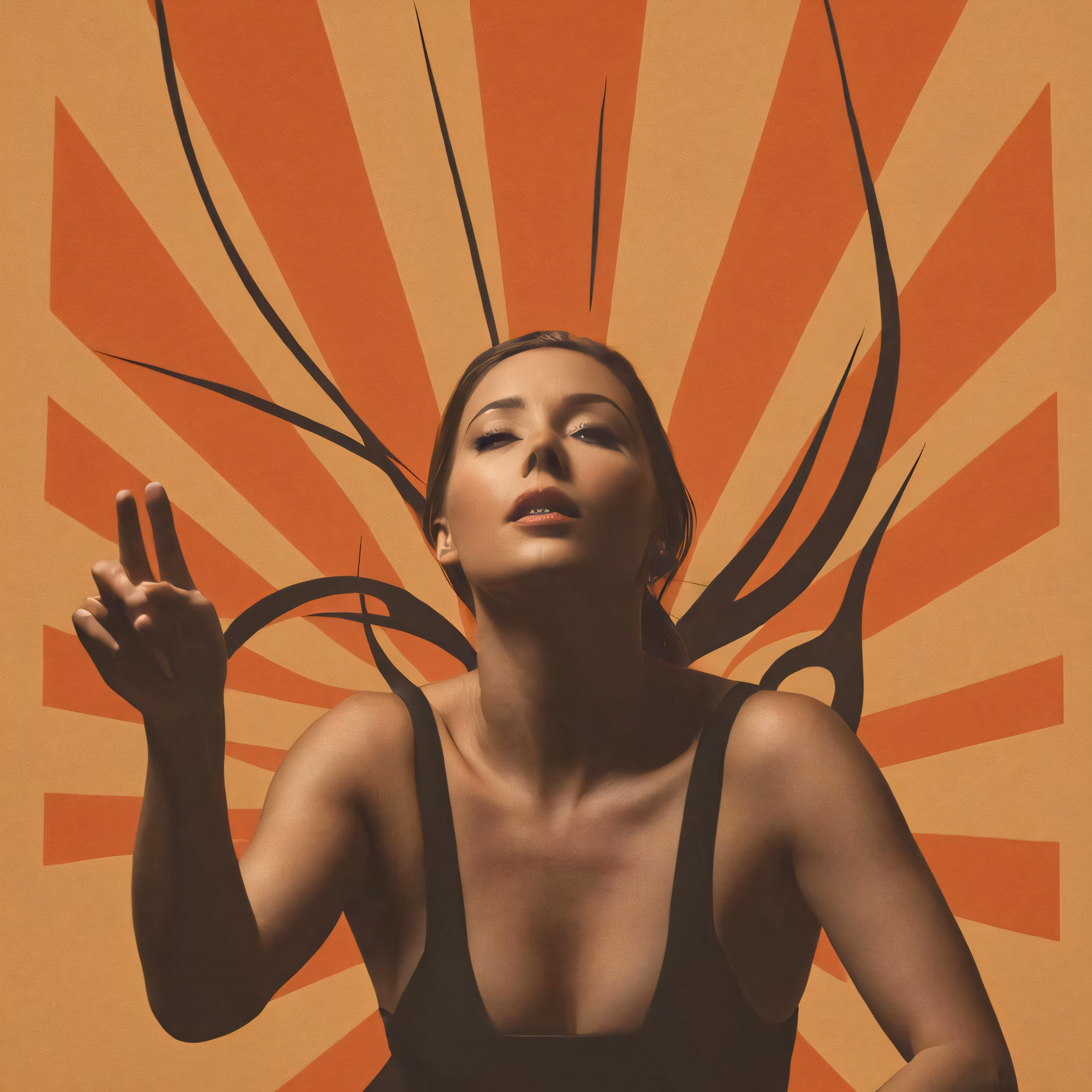 High resolution picture, free to use, the official logo for the 50 /a woman wearing a bikini top with large hair sticks sticking out of her chest