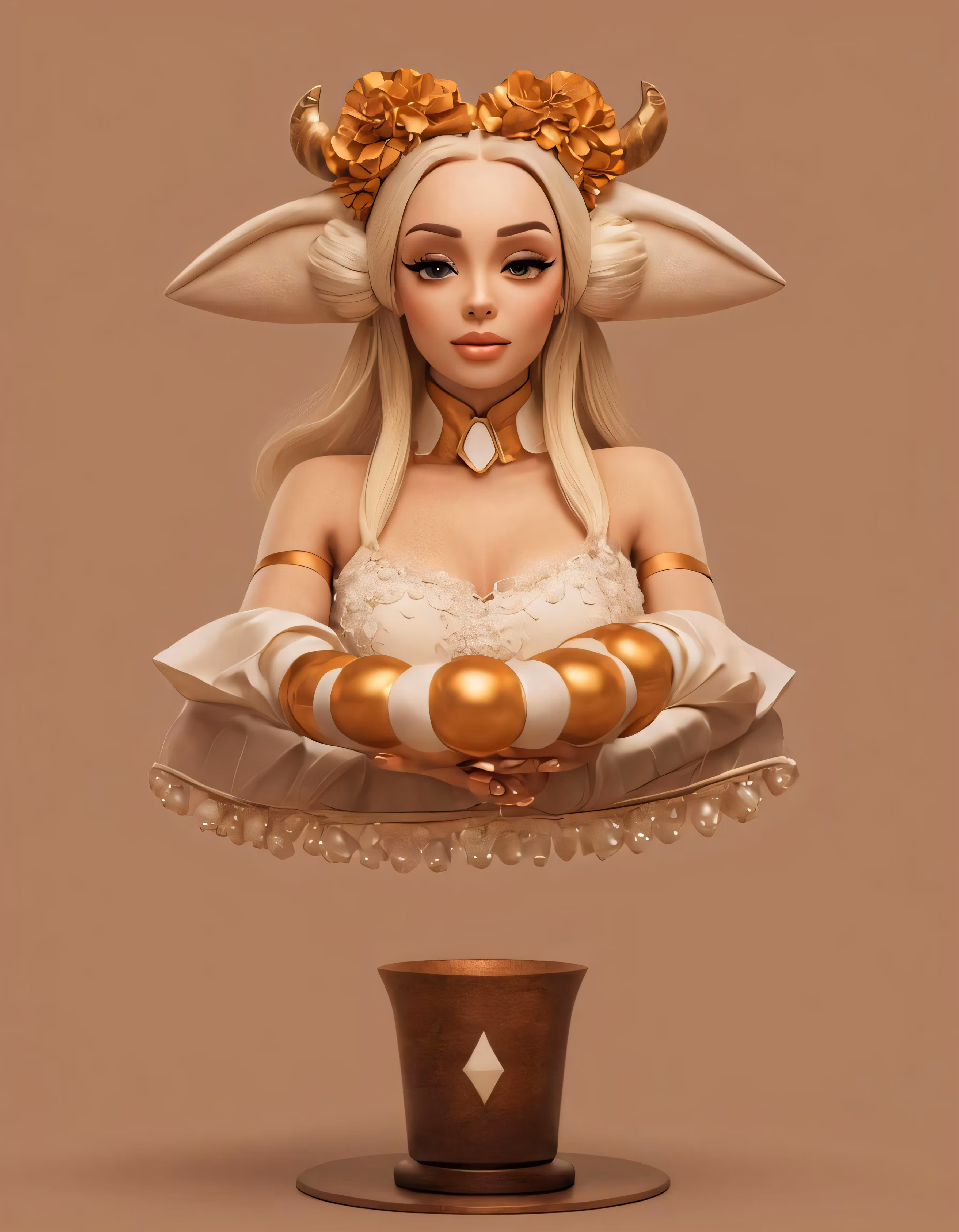 High resolution picture, free to use, the official logo for the 50 /a woman with a gold headpiece stands in front of a top hat