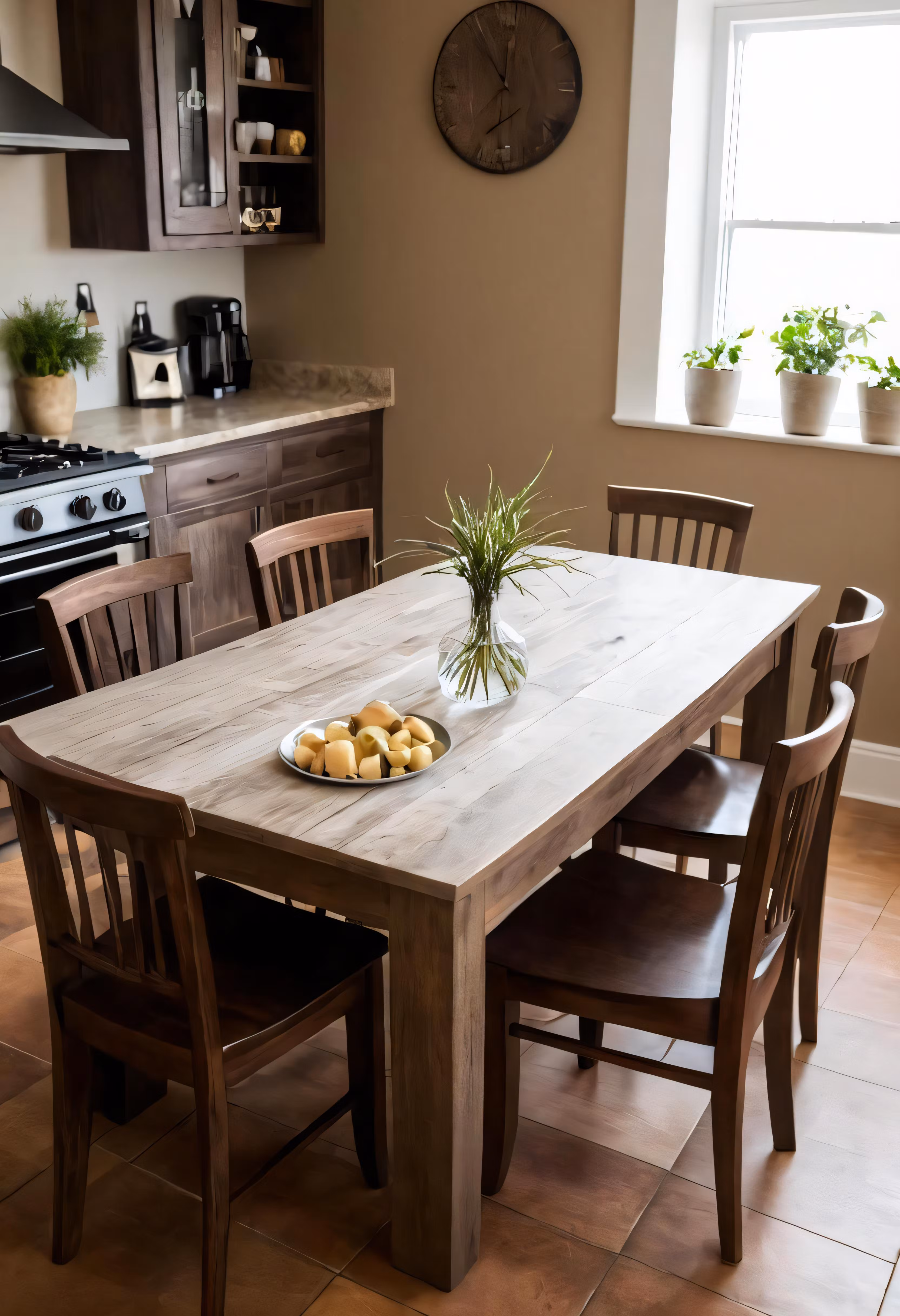 High resolution picture, free to use, the official logo for the 50 /a wooden table in the middle of a kitchen