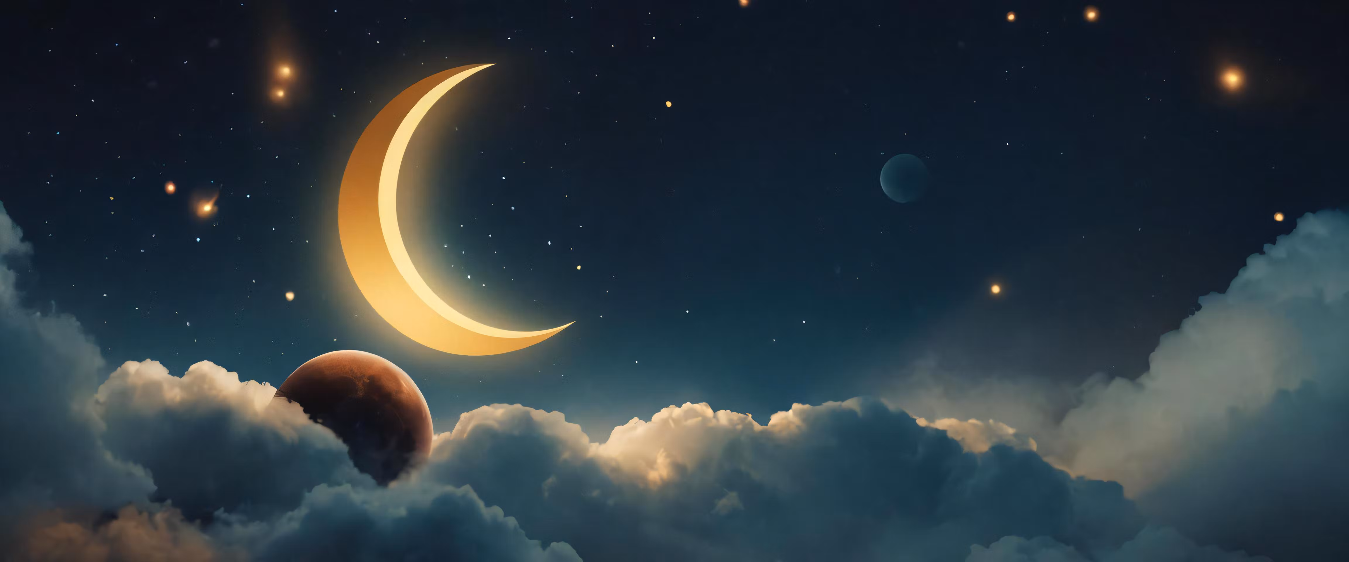 High resolution picture, free to use, the official logo for the 50 /a yellow crescent and stars are visible above the clouds