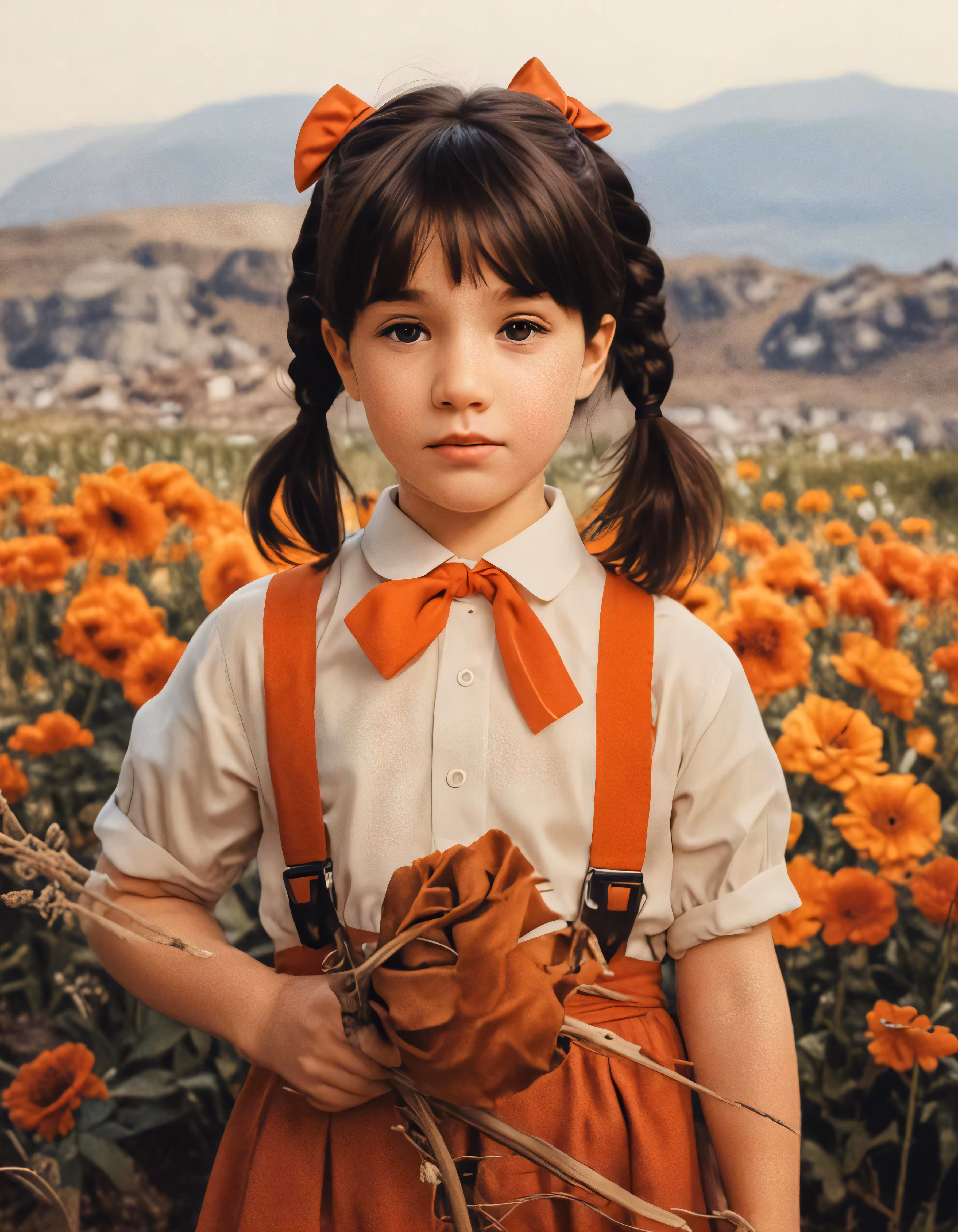High resolution picture, free to use, the official logo for the 50 /a young girl standing in a field of flowers