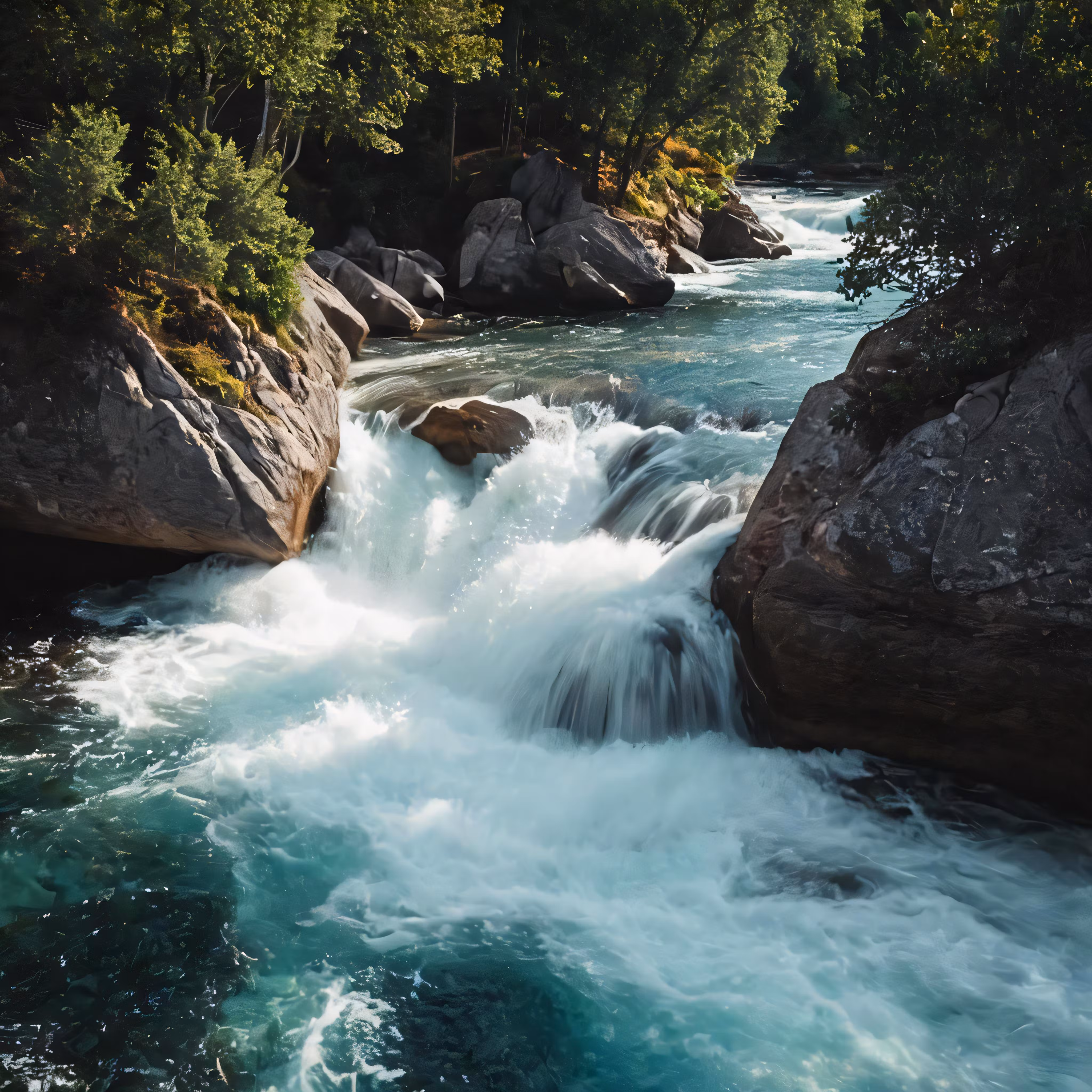 High resolution picture, free to use, the official logo for the 50 /an aerial view of a fast moving river
