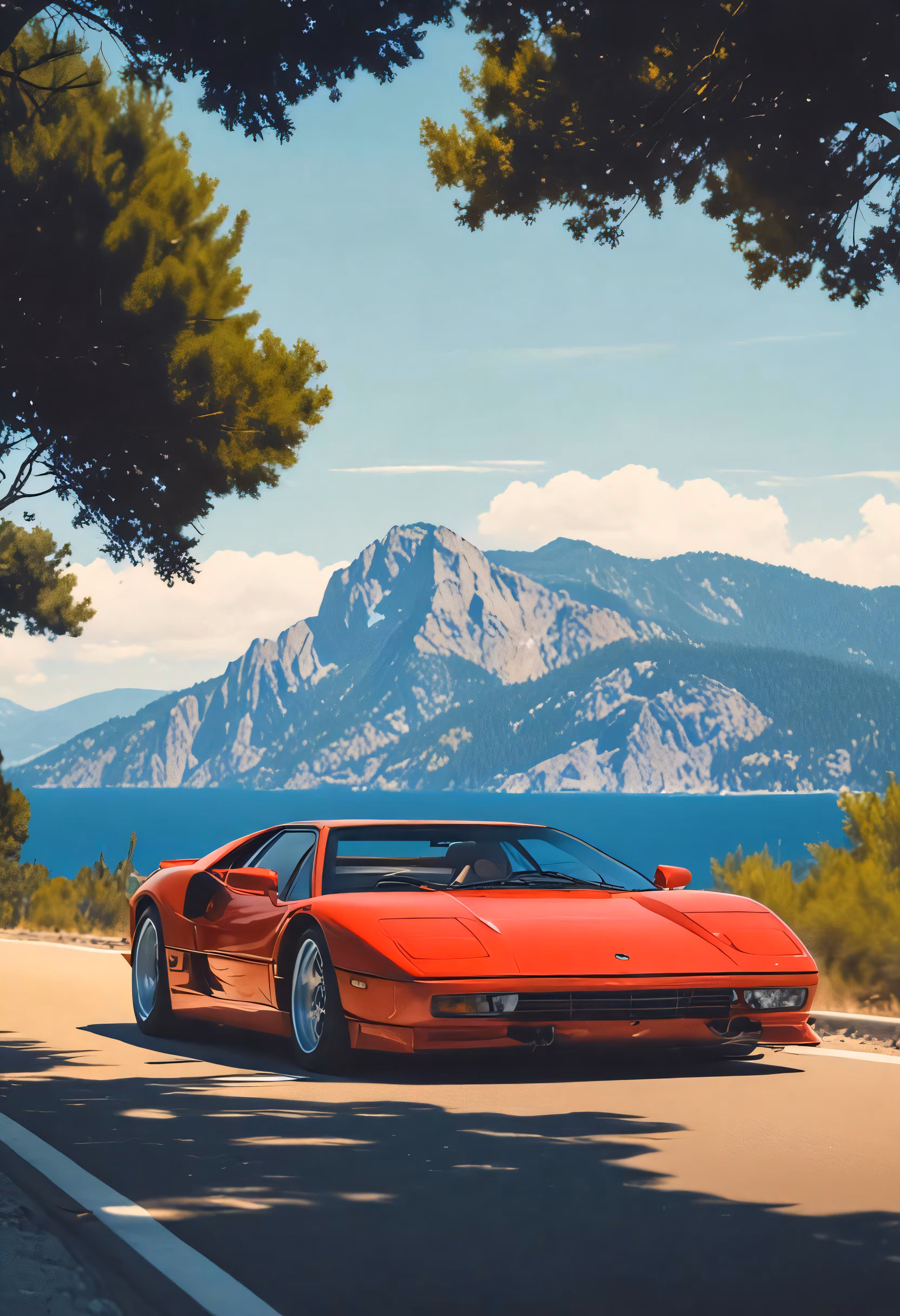 High resolution picture, free to use, the official logo for the 50 /an artistic view of a red sports car driving down a road