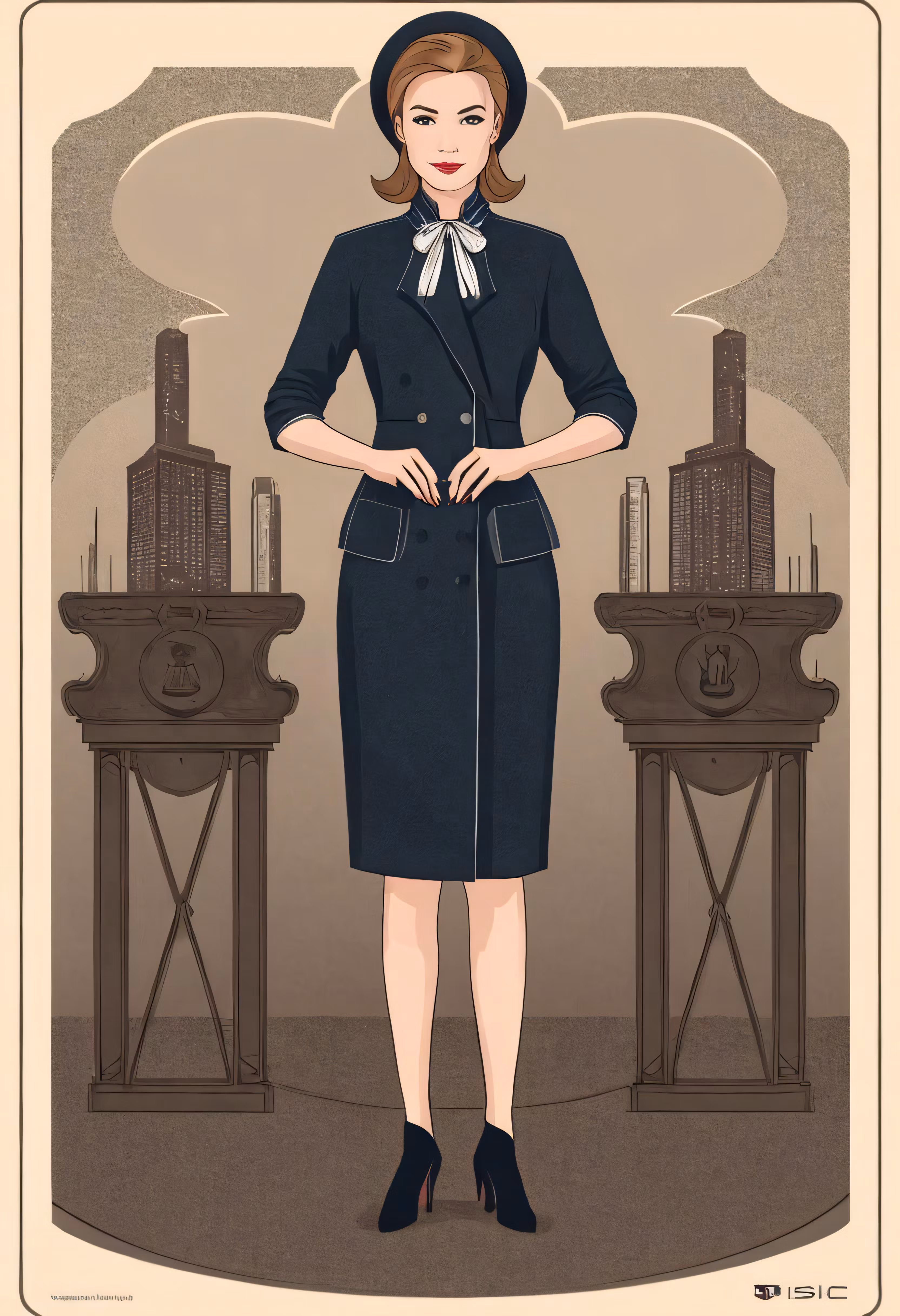 High resolution picture, free to use, the official logo for the 50 /an illustration of a woman in a dark suit
