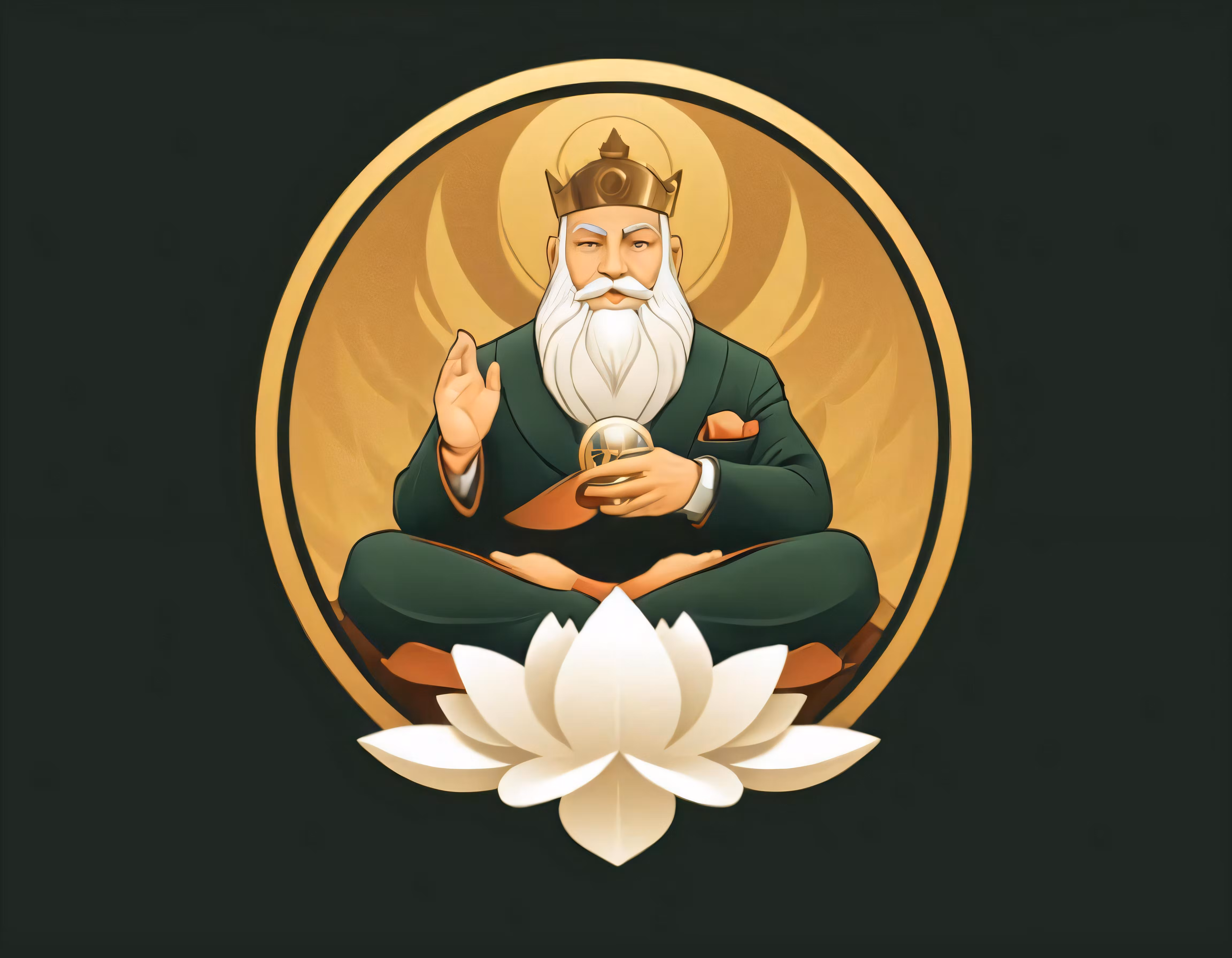 High resolution picture, free to use, the official logo for the 50 /an image of the guru buddha sitting in front of a white lotus