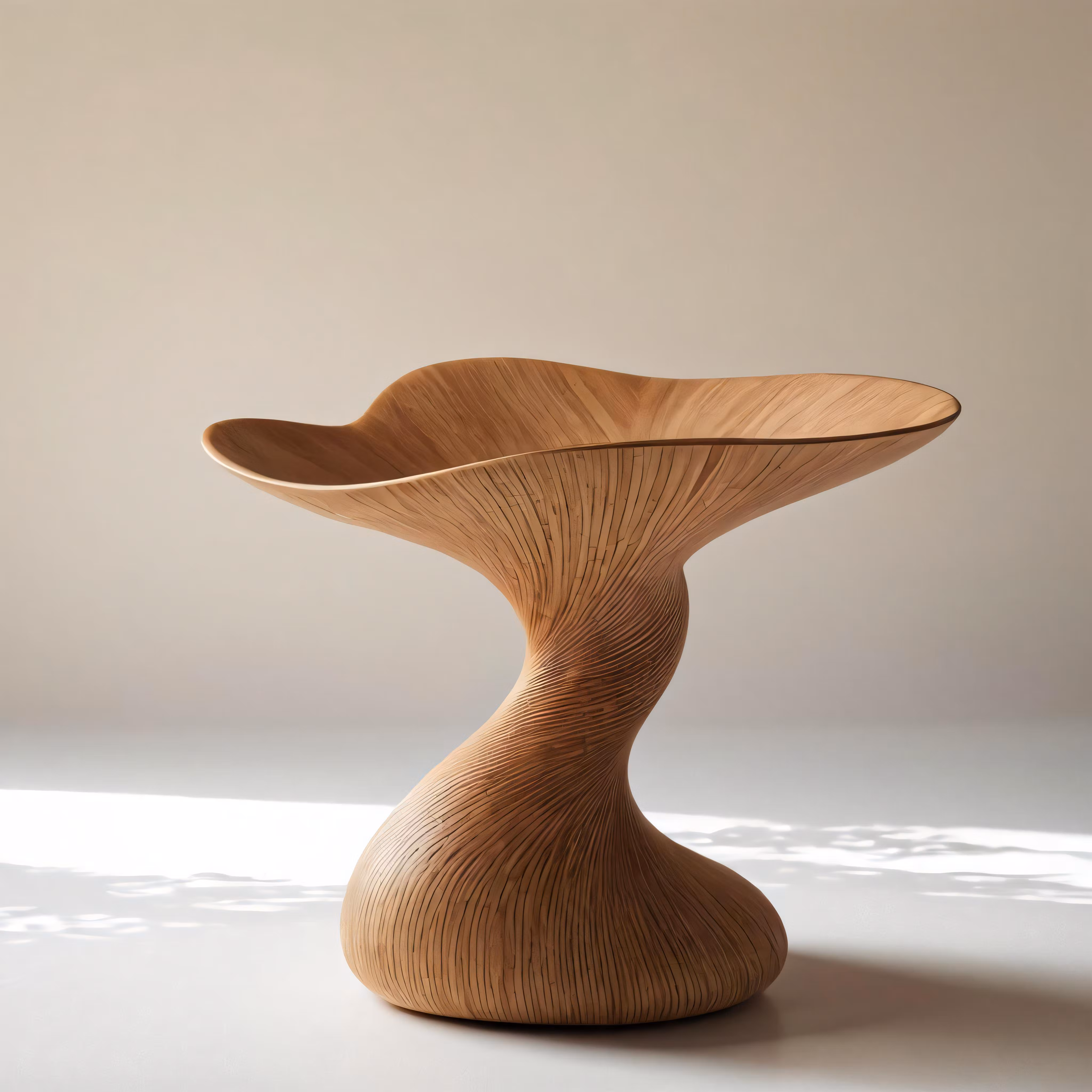 High resolution picture, free to use, the official logo for the 50 /an intricate wooden bowl shaped table with white background