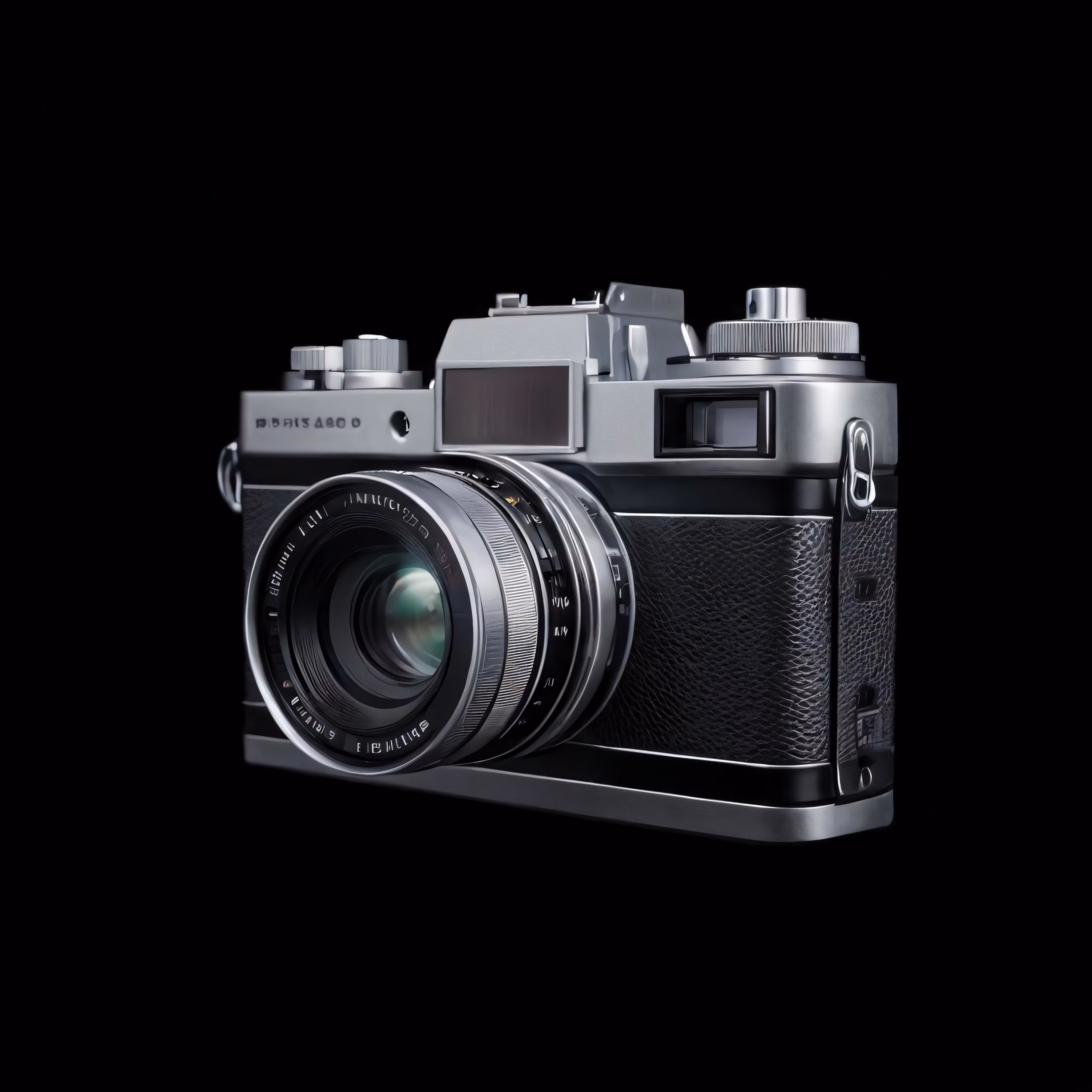 High resolution picture, free to use, the official logo for the 50 /an old camera is on display in front of a black background