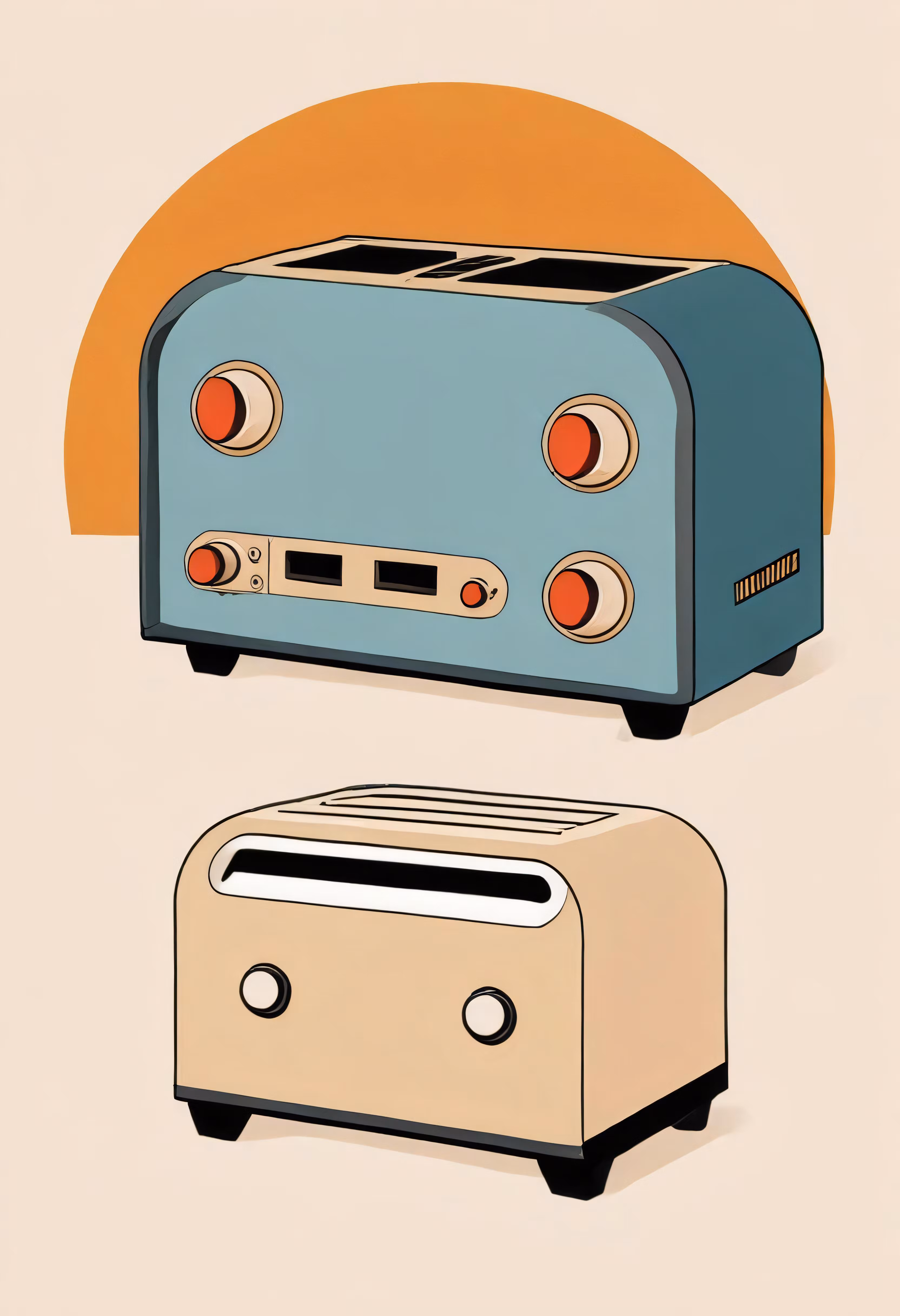 High resolution picture, free to use, the official logo for the 50 /an old fashioned toaster and a toaster oven