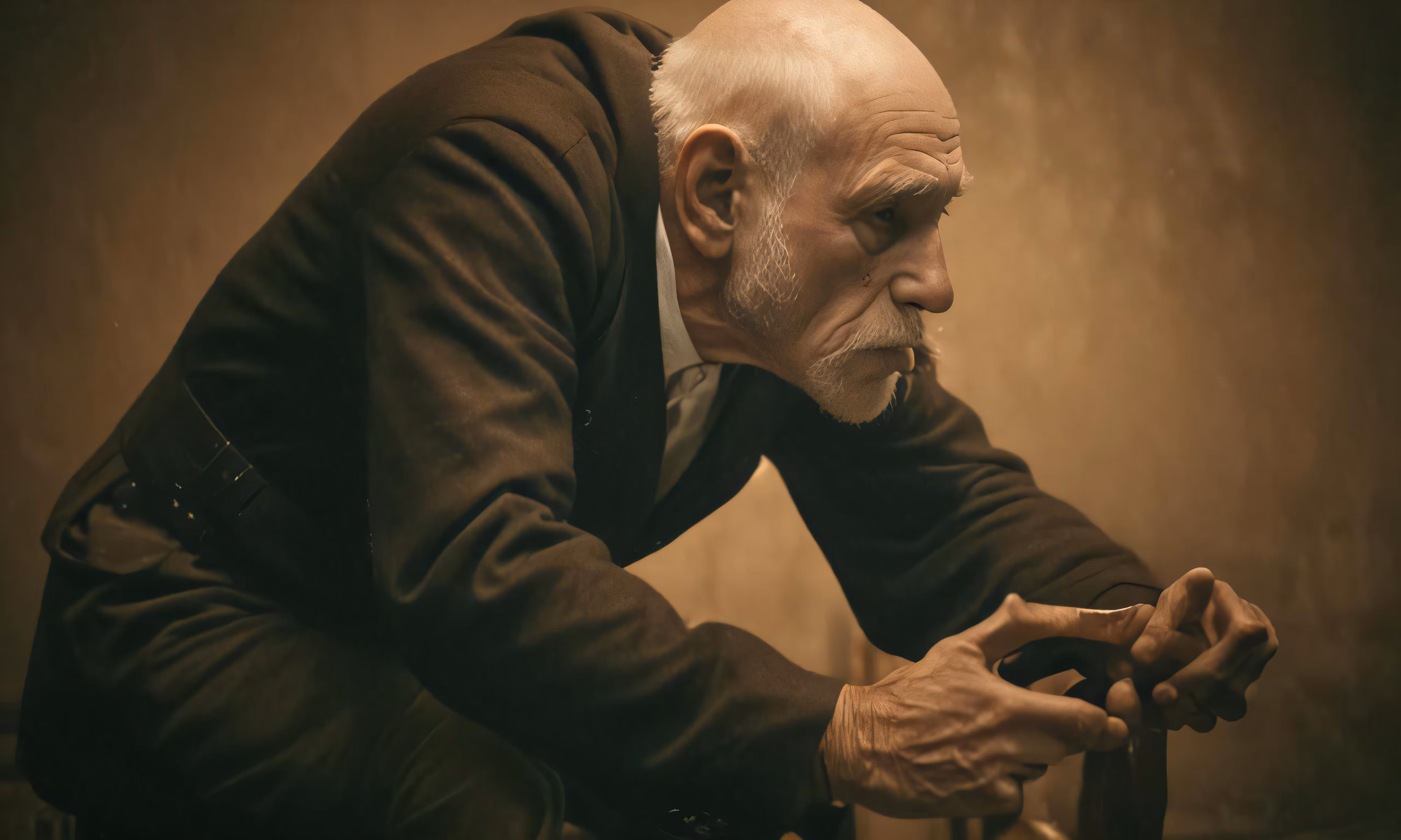 High resolution picture, free to use, the official logo for the 50 /an old man with long white hair sitting and holding a pipe