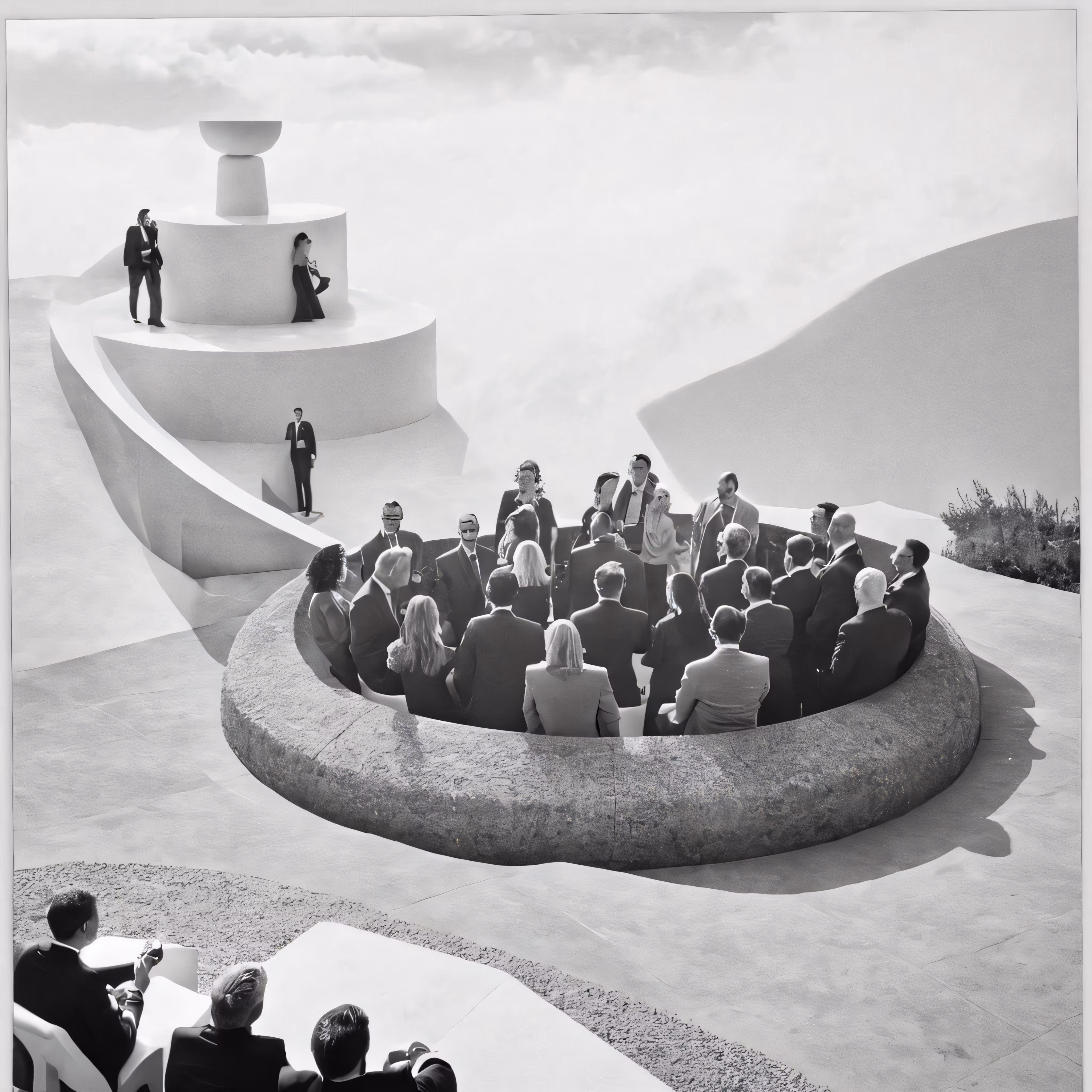 High resolution picture, free to use, the official logo for the 50 /an old photo of people in suits and ties sitting down to discuss a question