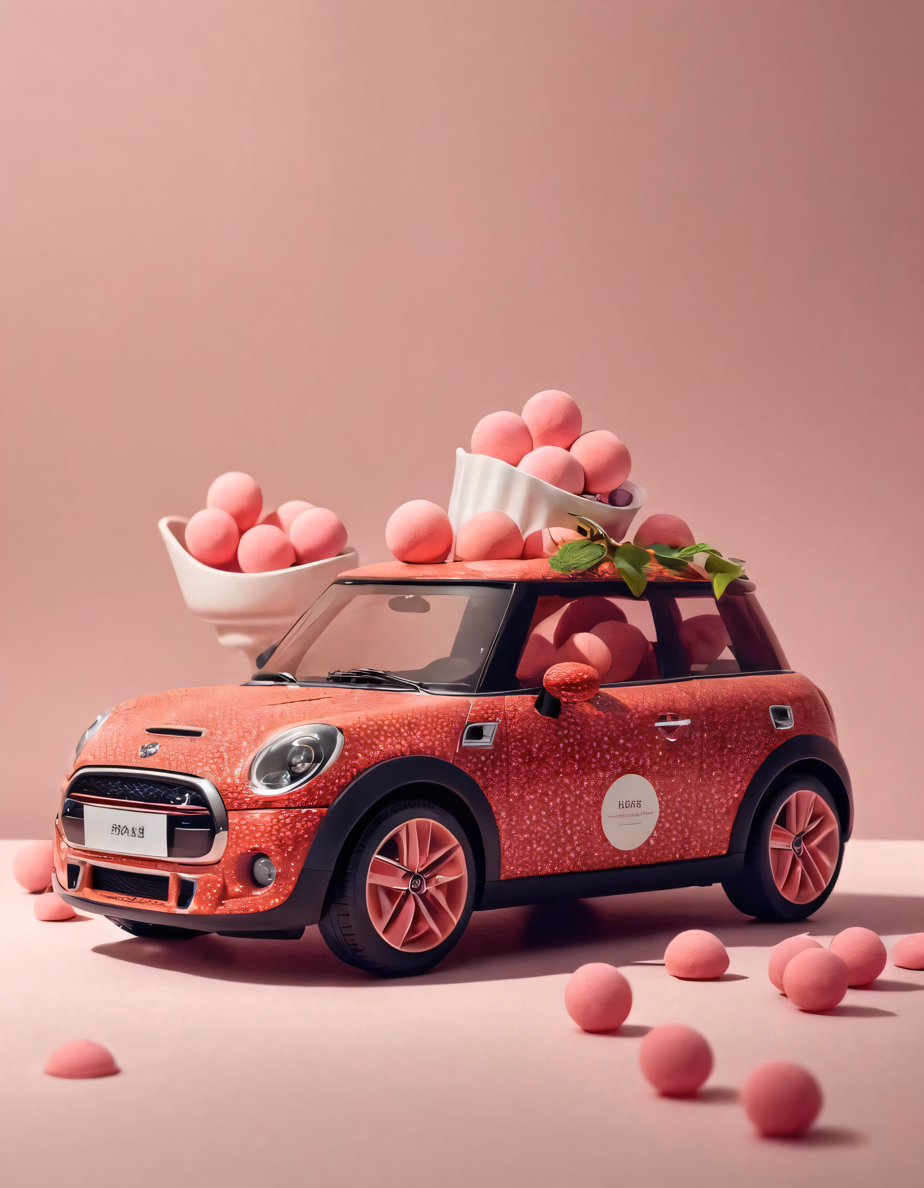 High resolution picture, free to use, the official logo for the 50 /an orange car with some pink things on top